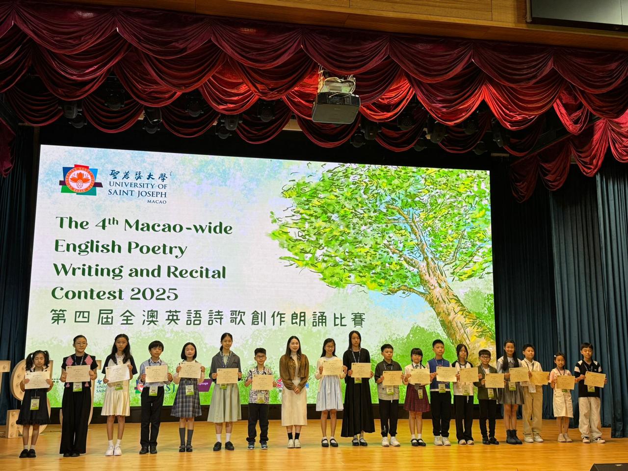 We are thrilled to announce the outstanding achievements of two students from the Primary English Section during the finals of the 4th Macao-wide English Poetry Writing and Recital Contest organised by The University of Saint Joseph (USJ) on May 17, 2025!