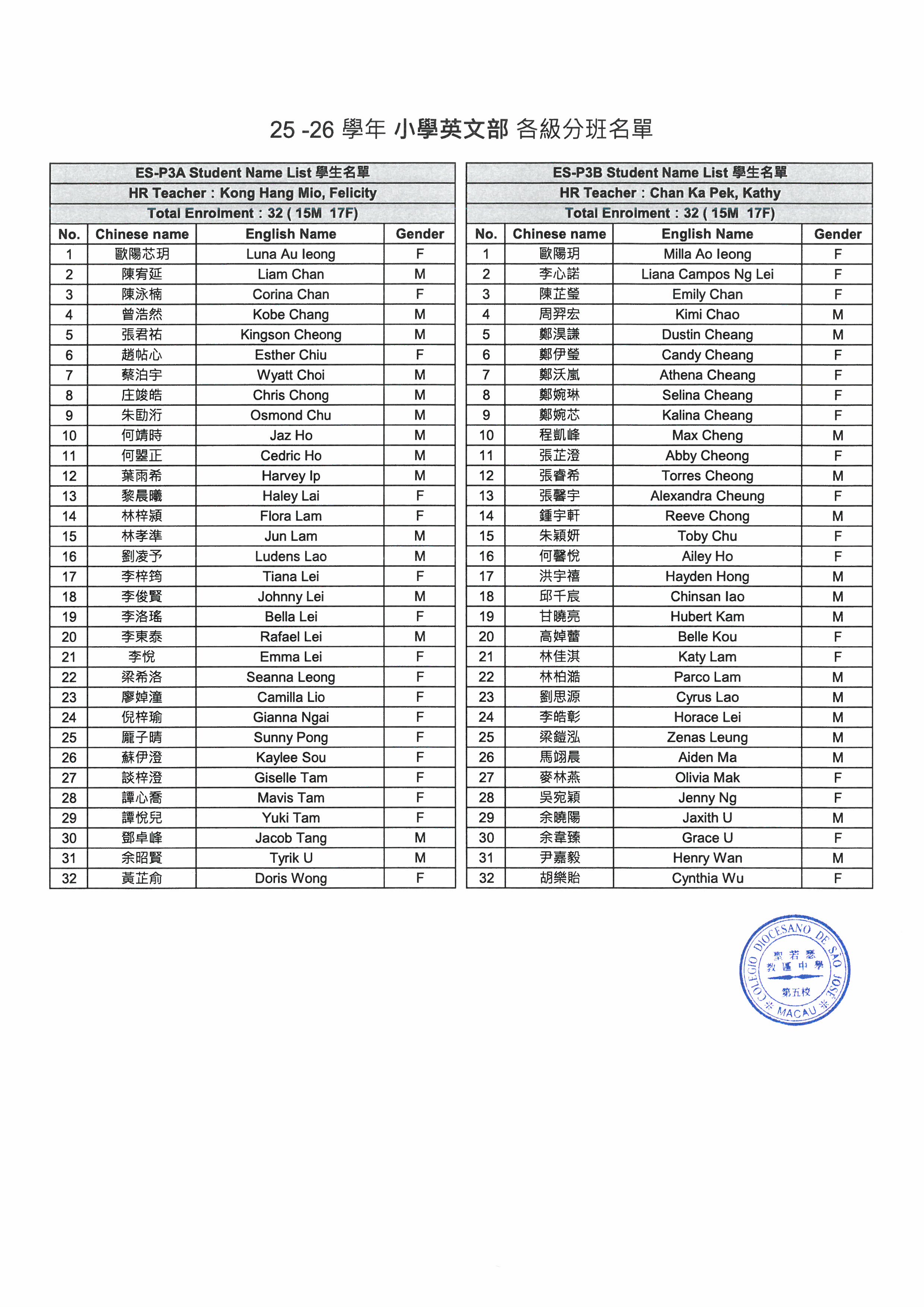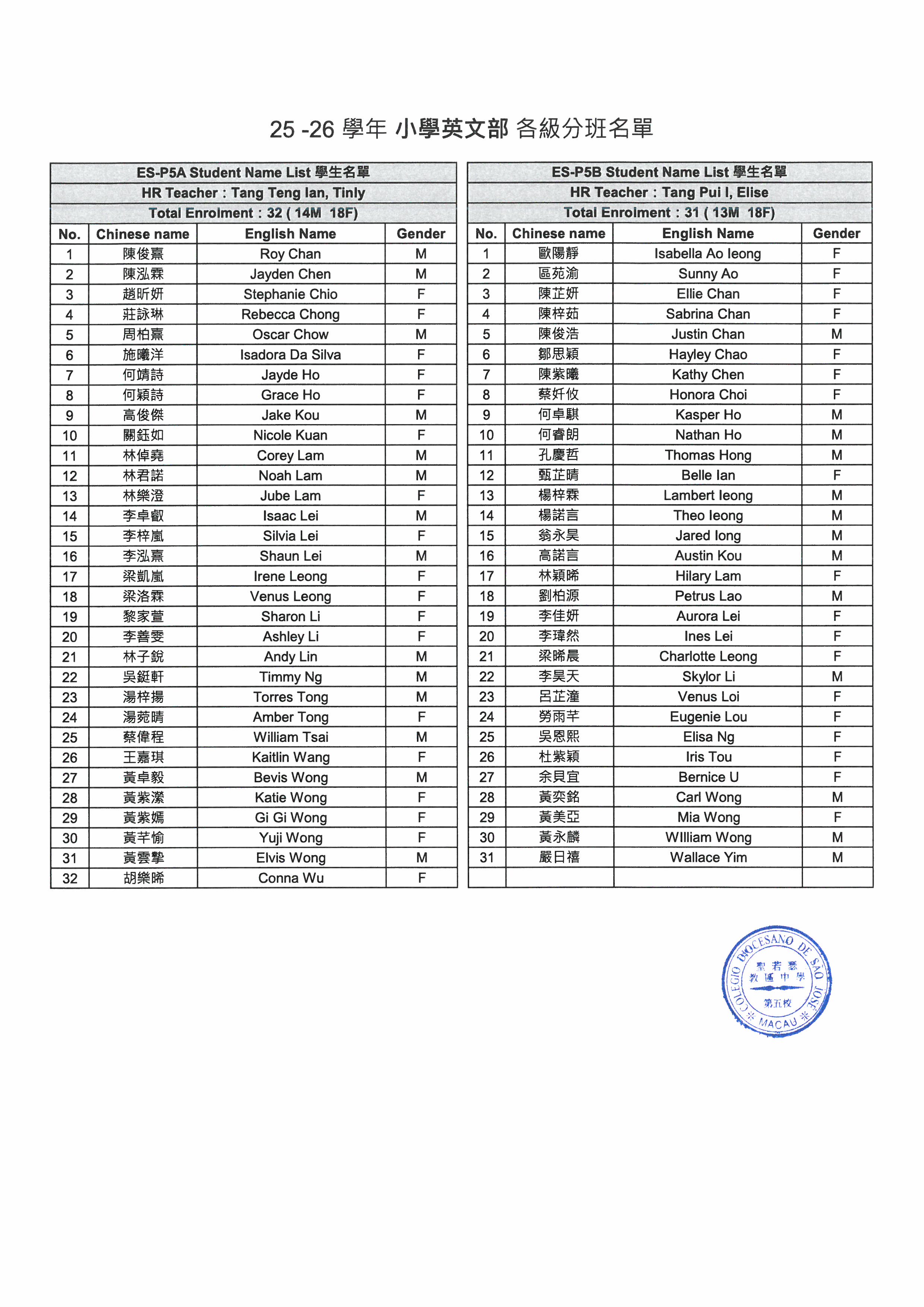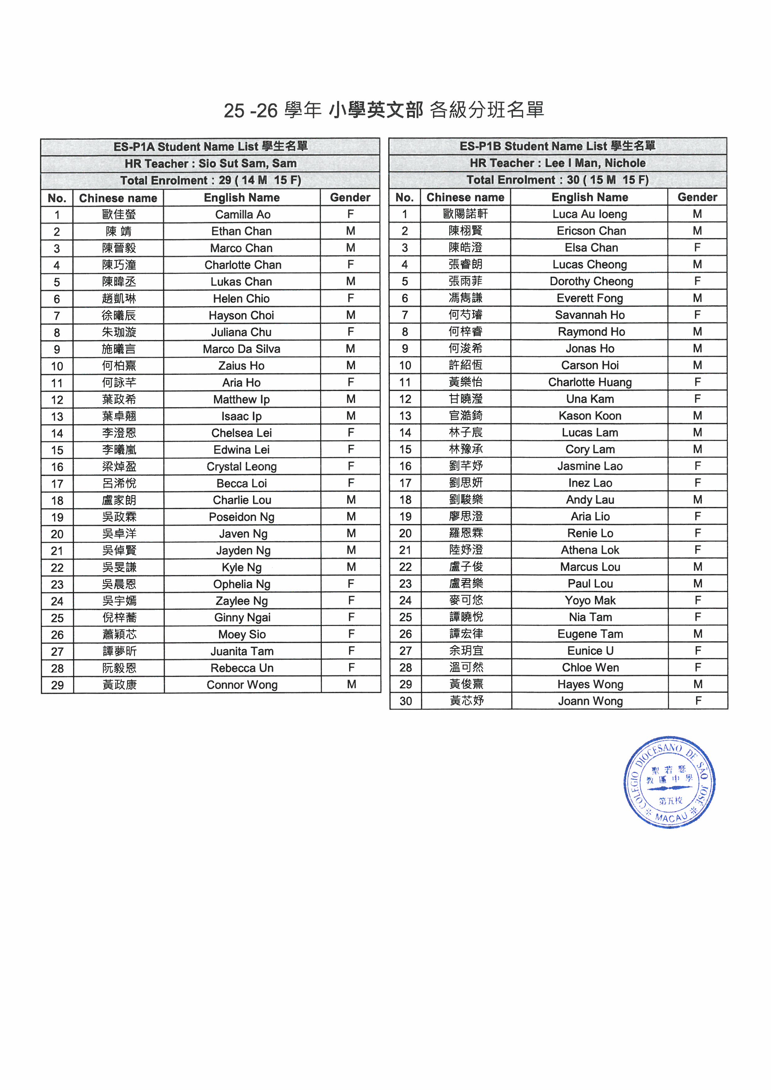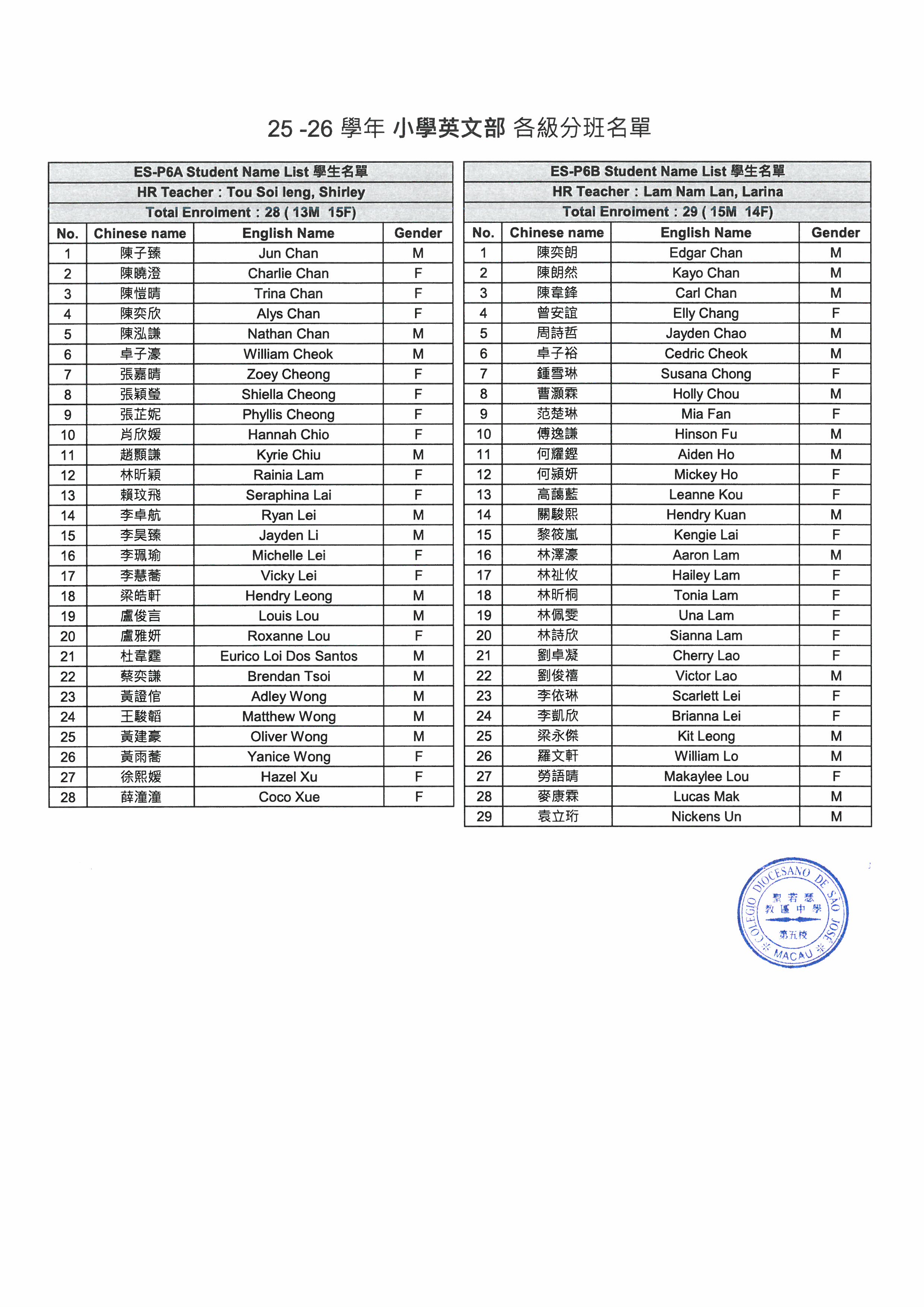 2025-2026學年小學英文部分班安排