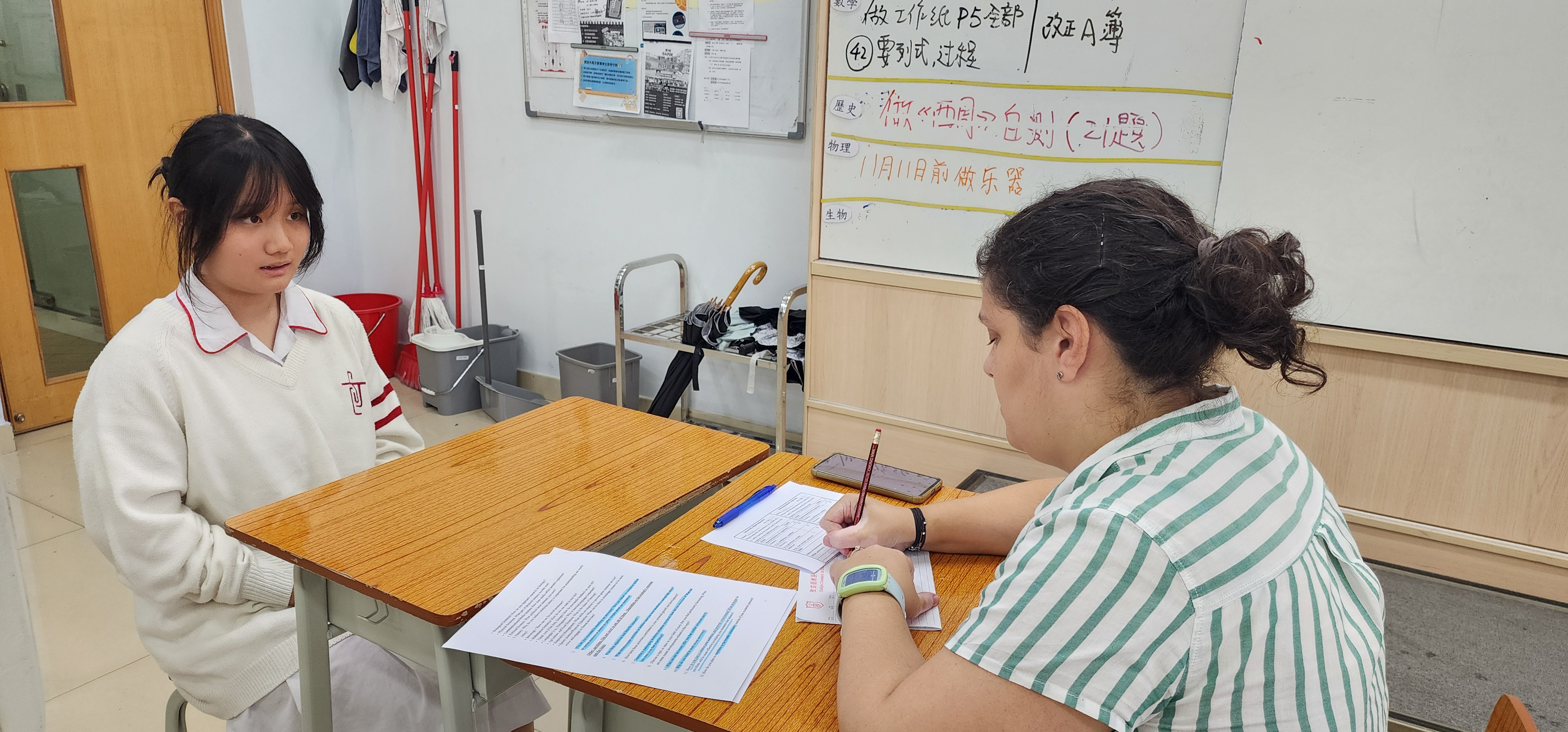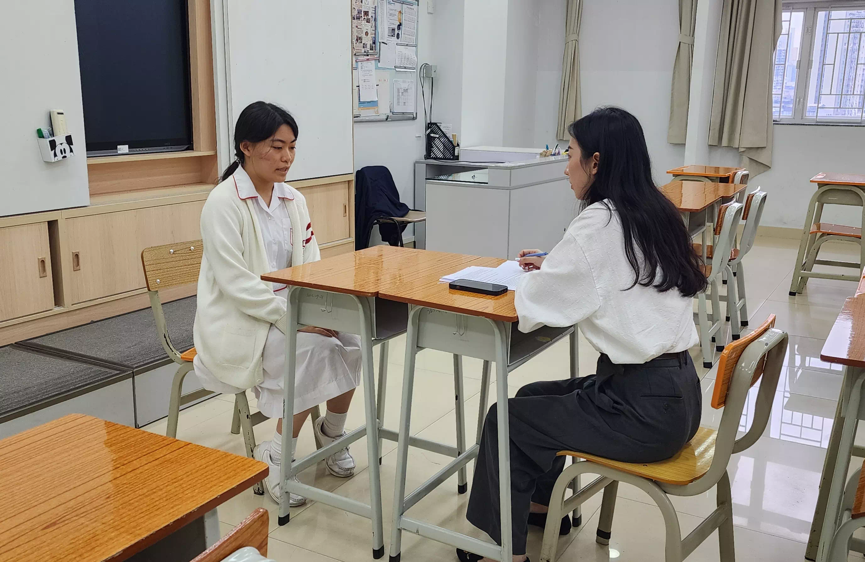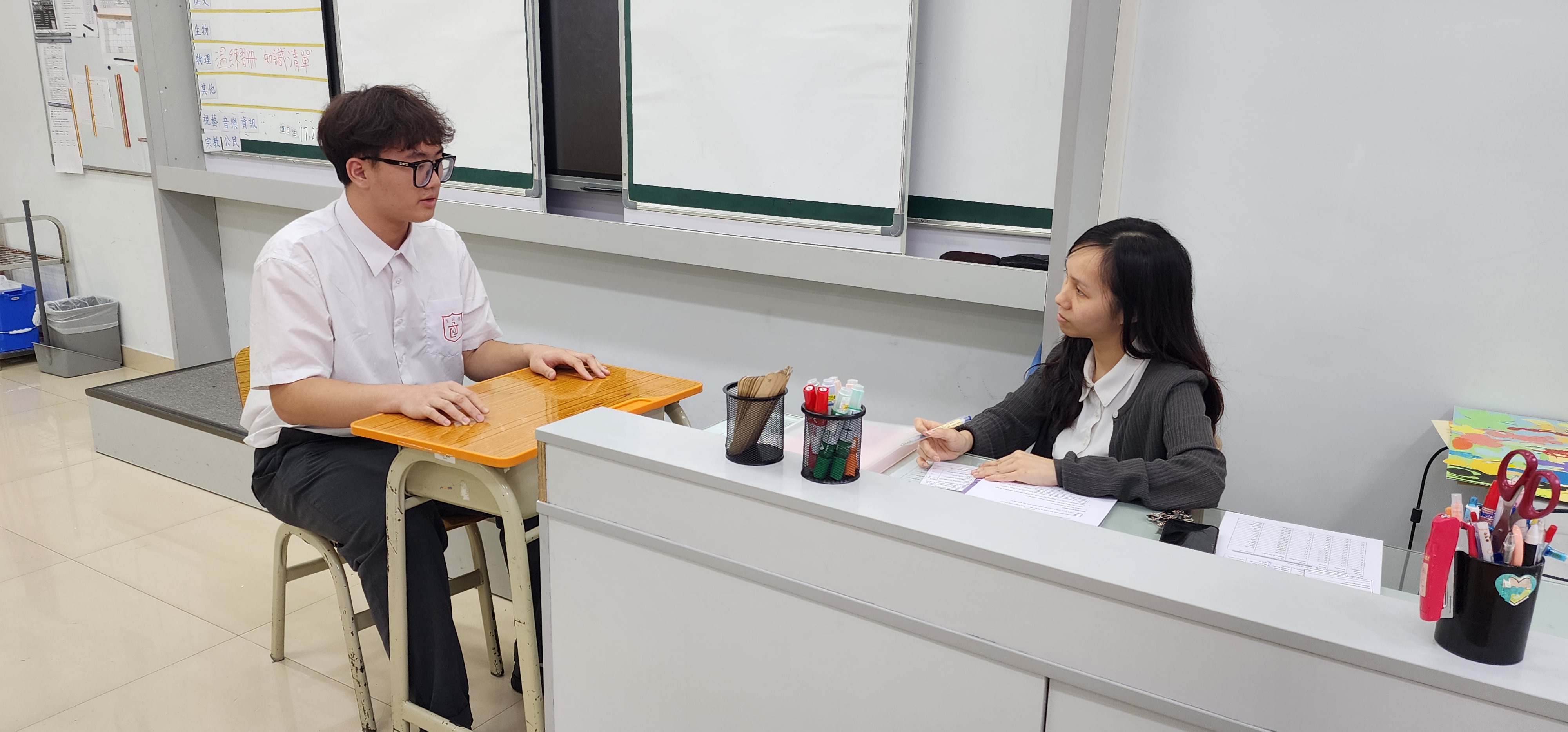 英語模擬面試-中學 2025-11-04 為助力高三、F6同學迎接大學入學面試,我校中學部於近日為同學們舉辦了一場英語模擬面試活動。 在模擬面試中,同學們得以親身體驗面試流程,並藉此機會鍛煉英語口語表達與臨場應變能力。我們特別感謝全校各學部老師的積極參與和悉心指導,他們為同學們提供了寶貴的建議與回饋,幫助大家更好地展現自己的風采。 同學們的認真準備與積極投入,是邁向成功的重要一步。祝願大家將此次經歷轉化為寶貴的經驗,在接下來的入學申請中一切順利,收穫理想的成果。