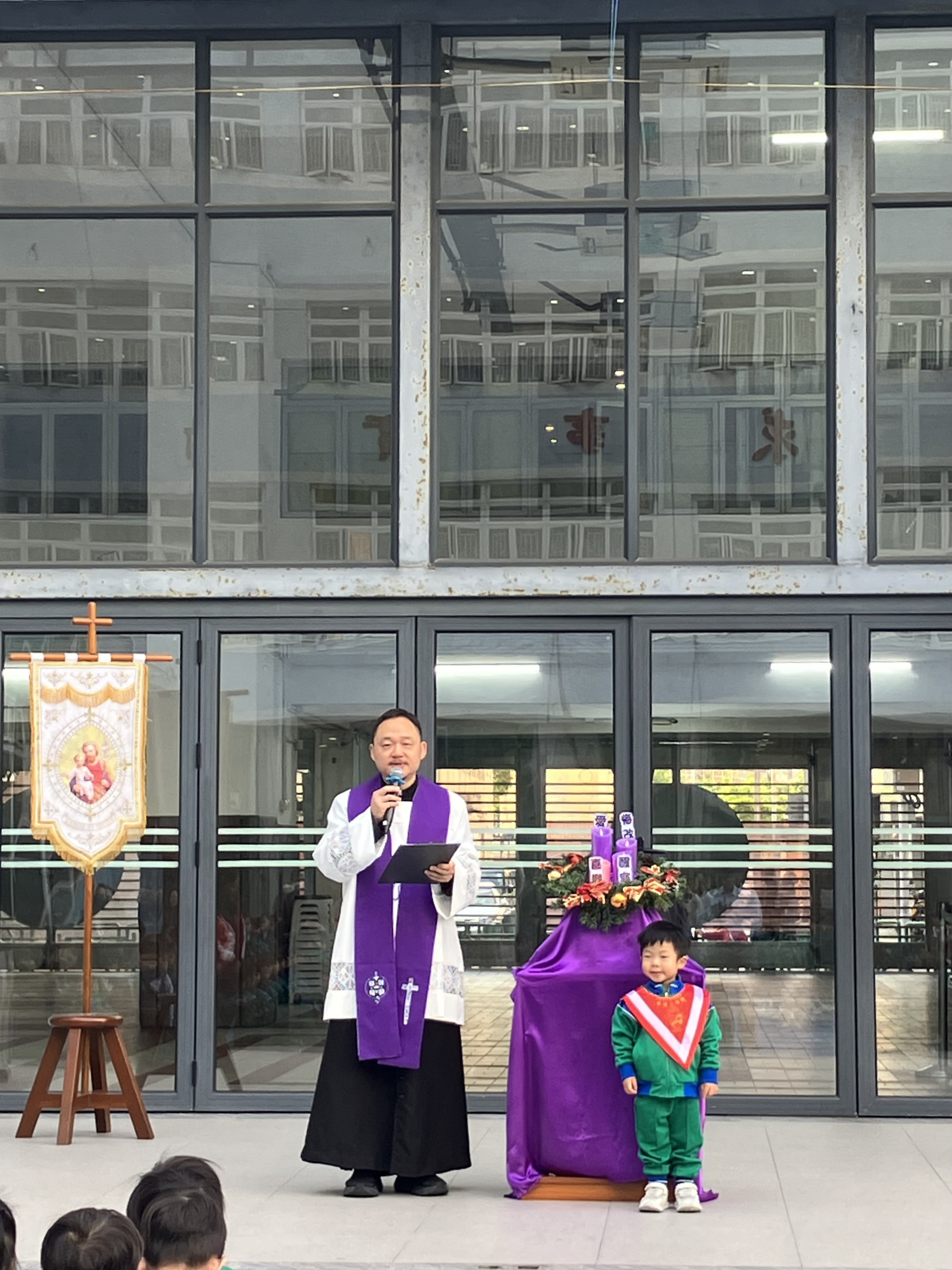 將臨環祝福禮(第三週) 2025-12-16 將臨期第三週的早會校牧張俊鍵神父為我們主持將臨環祝福禮,延續前兩週點燃「醒悟」與「悔改」兩支蠟燭後,本週我們迎來了第三支蠟燭——喜樂。 將臨期第三主日又稱「喜樂主日」,因耶穌降生的日子已近在眼前,教會邀請我們懷著期待與歡欣的心,迎接即將來臨的救恩。願我們都能在這段預備期內,以醒悟的心、悔改的勇氣與真實的喜樂,準備自己的心靈,迎接帶給世界和平與希望的主。