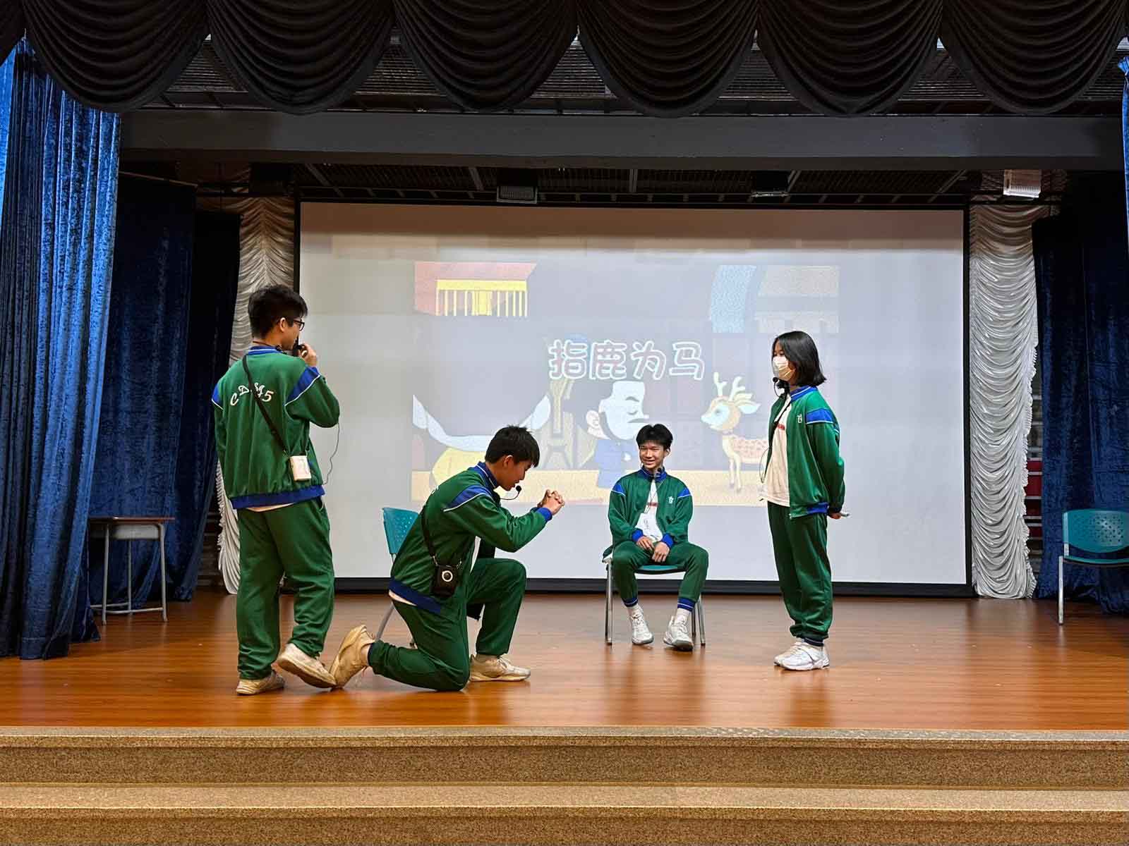 中學中文部初二級成語話劇比賽-中學 2024-03-06 中國文化博大精深,特別是成語,更是中華文明的一顆璀璨明珠。3月6日,中學中文部初二年級於A5禮堂舉行了中文科組活動──成語話劇比賽。參賽者施展渾身解數,最後由初二乙班(劇目:指鹿為馬) ,初二乙班(劇目:七步成詩)和初二丙班(劇目:臥薪嘗膽),分別取得冠、亞、季軍。