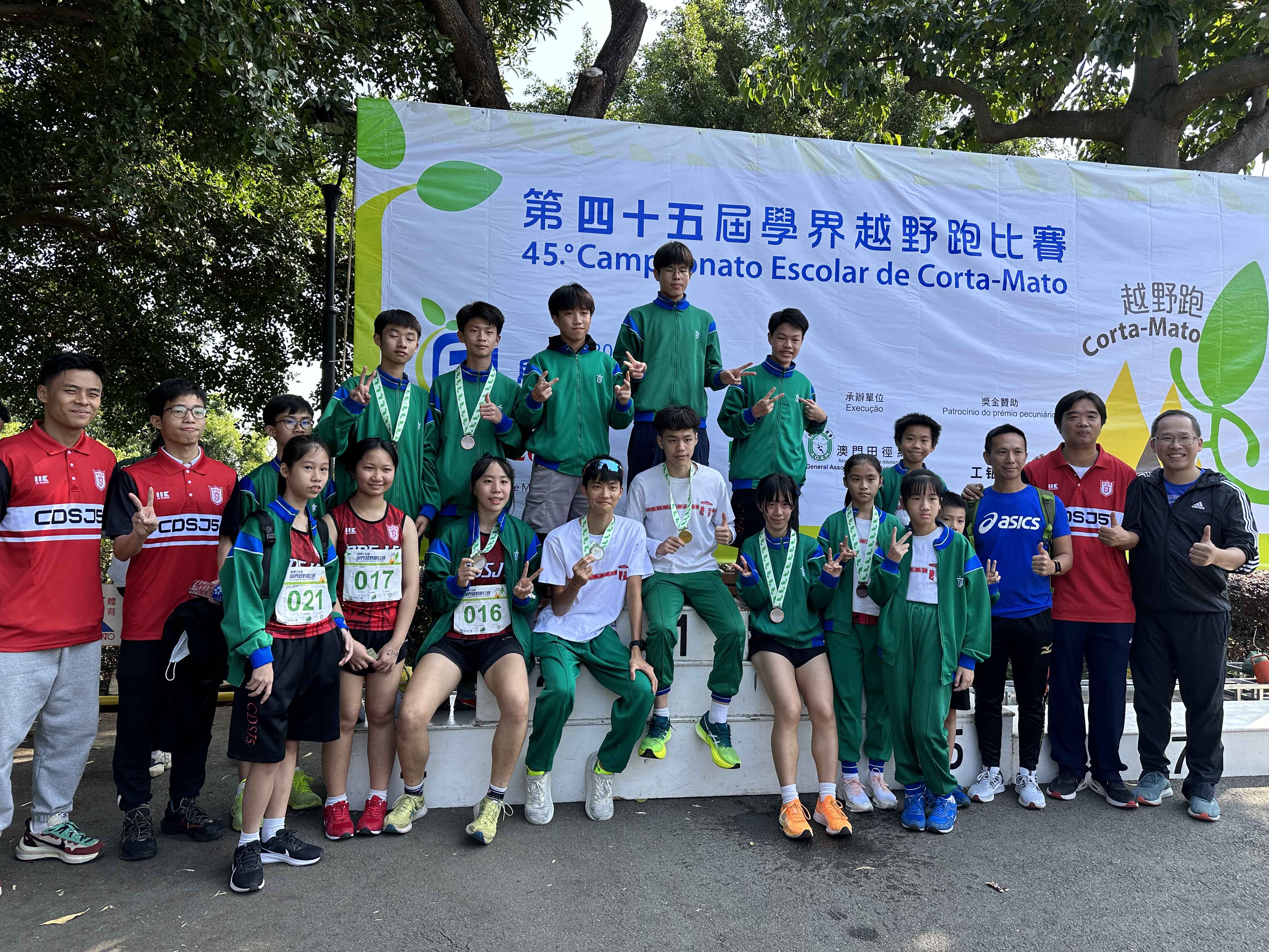 澳門教育及青年發展局主辦的第四十五屆學界越野跑比賽已於2023年11月26日早上在松山健康徑順利結束。本校的中小學男女運動員參加了其中九個組別的比賽,並取得了優異的成績。