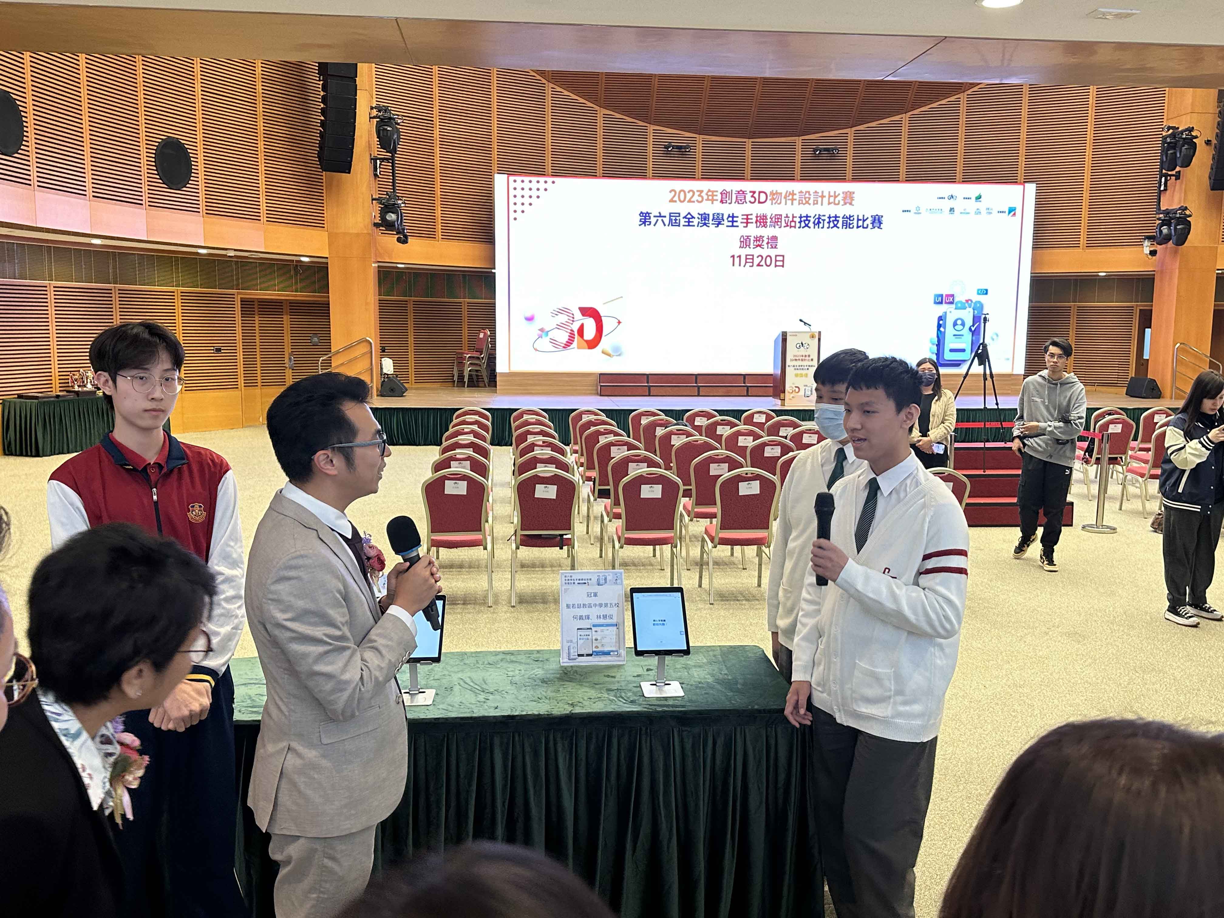 本校學生參加由生產力暨科技轉移中心主辦的「第六屆全澳學生手機網站技術技能比賽」。該比賽旨在培養本澳網站開發人才,透過培訓和比賽,推動本澳資訊科技教育的普及,提升學生在製作移動網站設計和開發方面的技能,同時擴闊他們的視野。