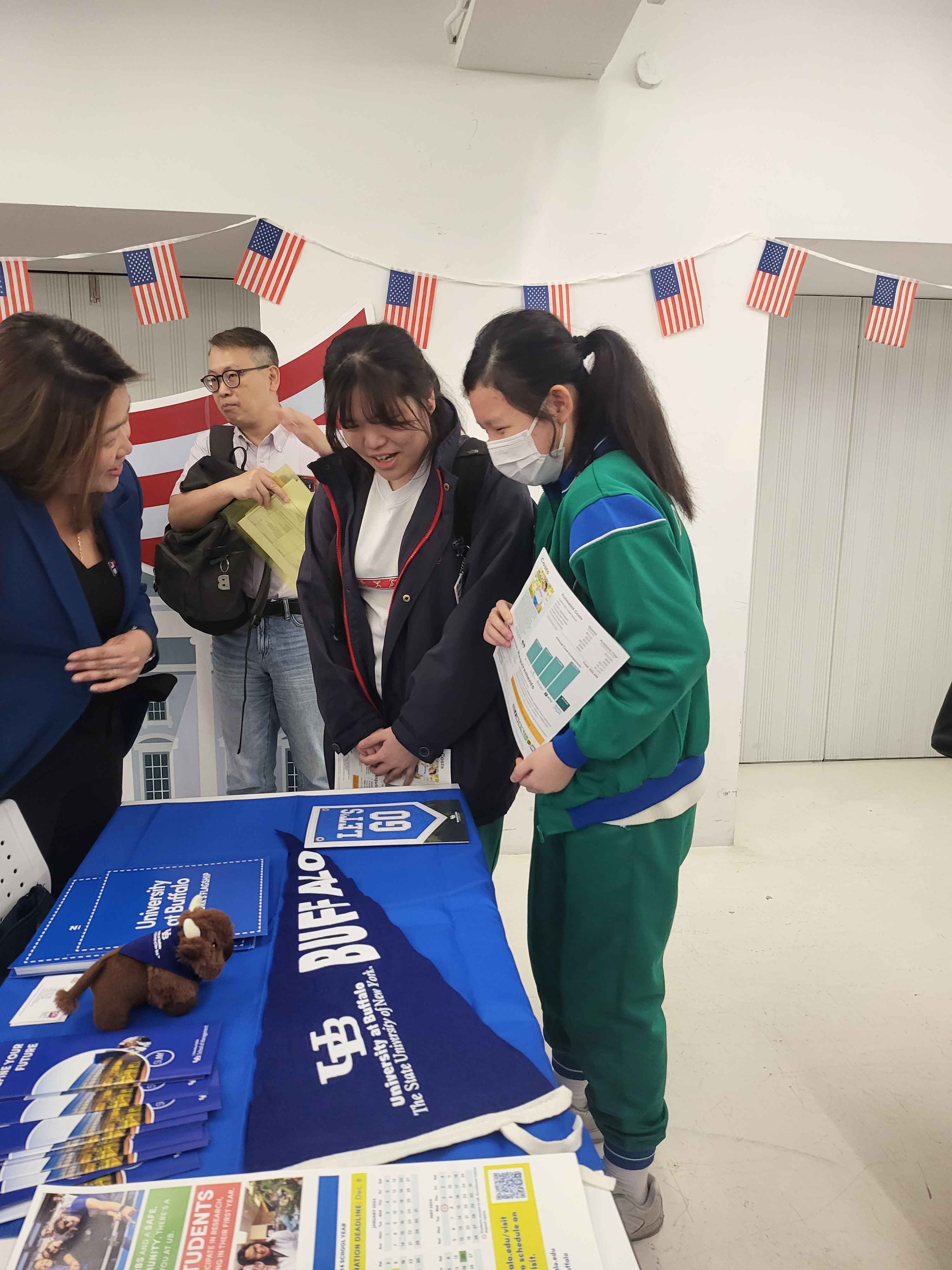 除了與大學代表的對話,學生們還參觀了展覽區,瞭解美國大學的升學資訊和報名流程。此外,各大學代表還詳細介紹了各自的校園環境、課程特色和優勢。