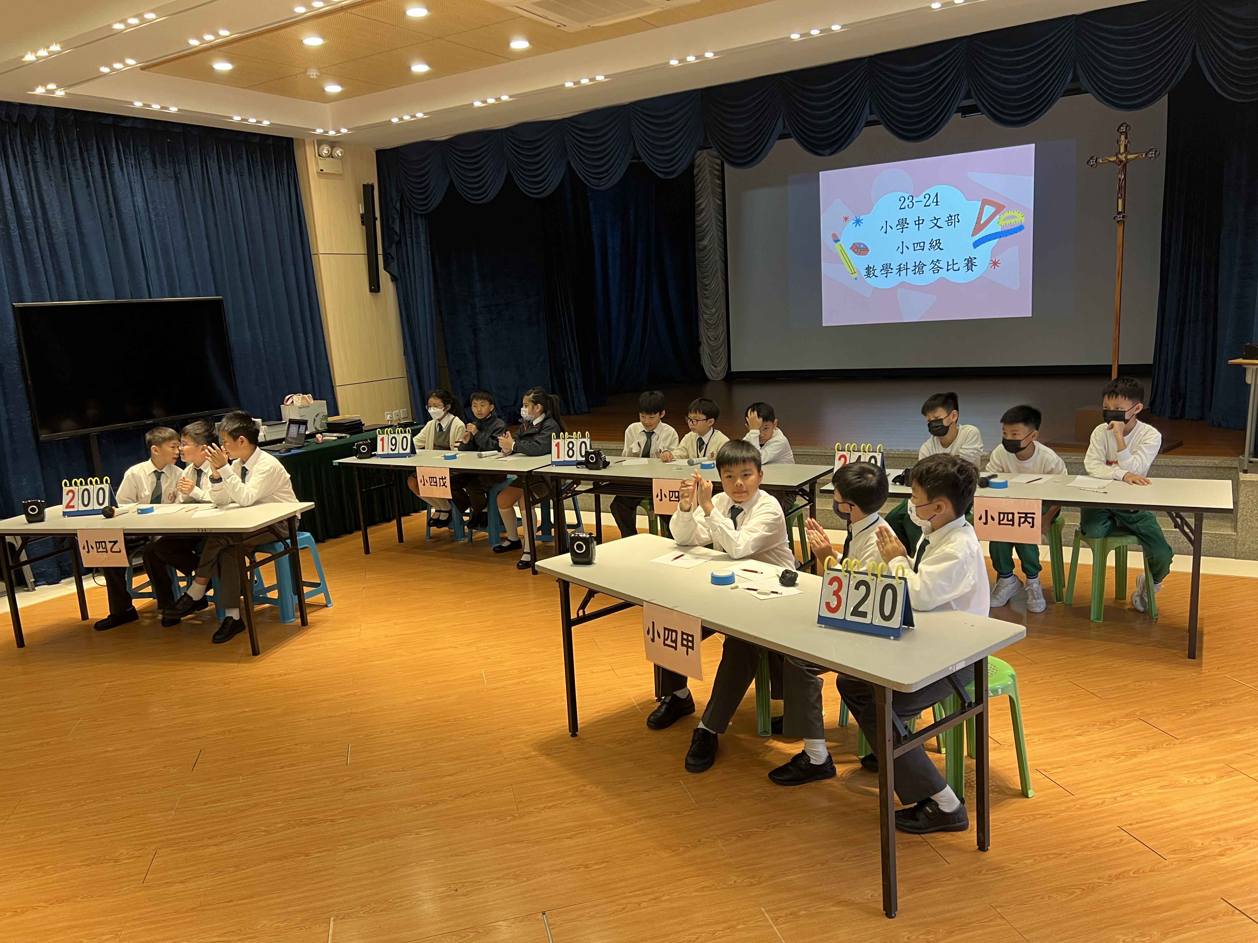 本校小學中文部於早前舉行了數學科搶答比賽,透過比賽提高學生對數學的興趣,發揮解難、協作及溝通能力,培養學生的競賽能力及團體合作精神。問答比賽分成3個環節,分為IPAD搶答題、各班必答題及搶答題。
