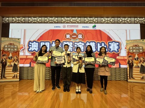 第一屆校際演講比賽(中學) 2024-11-30 演講比賽提升了學生的演講技巧,更培養了他們的正面思維和自信心,促進了多元發展,澳門演講專業協會主辦、澳門教育及青年發展局協辦的第一屆校際演講比賽於早前順利舉行,吸引了十五所學校熱情參與。經過激烈的初賽及決賽,本校在本次比賽中取得佳績! 校際盃優秀團體獎一等獎:初一 鄭詠琪、初二 阮瑭、F5 歐子泰、F1 吳家謙 校際盃備稿演講一等獎 :初一 鄭詠琪 校際盃即興演講一等獎 :初二 阮瑭 指導老師:施君悅、梁曉瑩