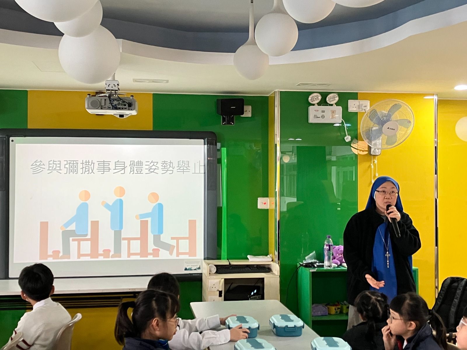 1月6日中午,眷顧修女為中、小學同學主持一場講座,深入闡釋彌撒感恩聖祭與聖體聖事的意義,並分享如何預備心靈,以虔敬之心參與彌撒。修女期許同學們不僅在聖祭中靜心聆聽天主聖言,更能將所領受的啟發與教導,轉化為日常生活中的具體實踐。講座結束後,修女與同學共進午餐,同學把握機會向修女提出心中對信仰與聖事的疑問。