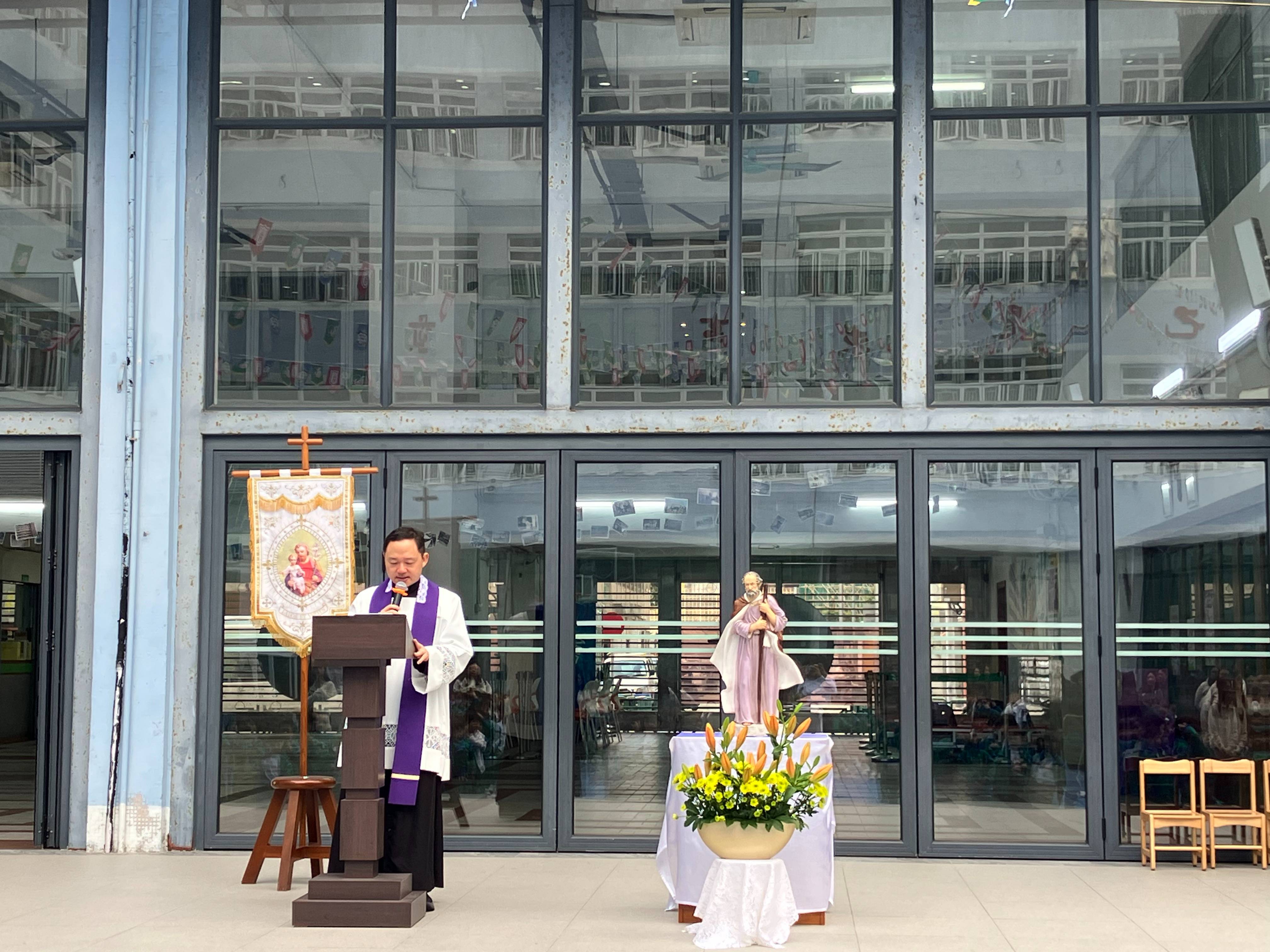 校牧張俊鍵神父在講道中勉勵我們,效法大聖若瑟的謙遜、愛護家人和順從天主的美德,尤其我們身處這個充滿挑戰的時代,大聖若瑟那種默默耕耘、不張揚的精神更顯珍貴。祈求聖若瑟幫助我們在課業上努力不懈,與同學相處時彼此包容接納,在家裡孝順父母,遇到困難時信賴天主的安排,如他一樣做個沉穩且堅定的義人。