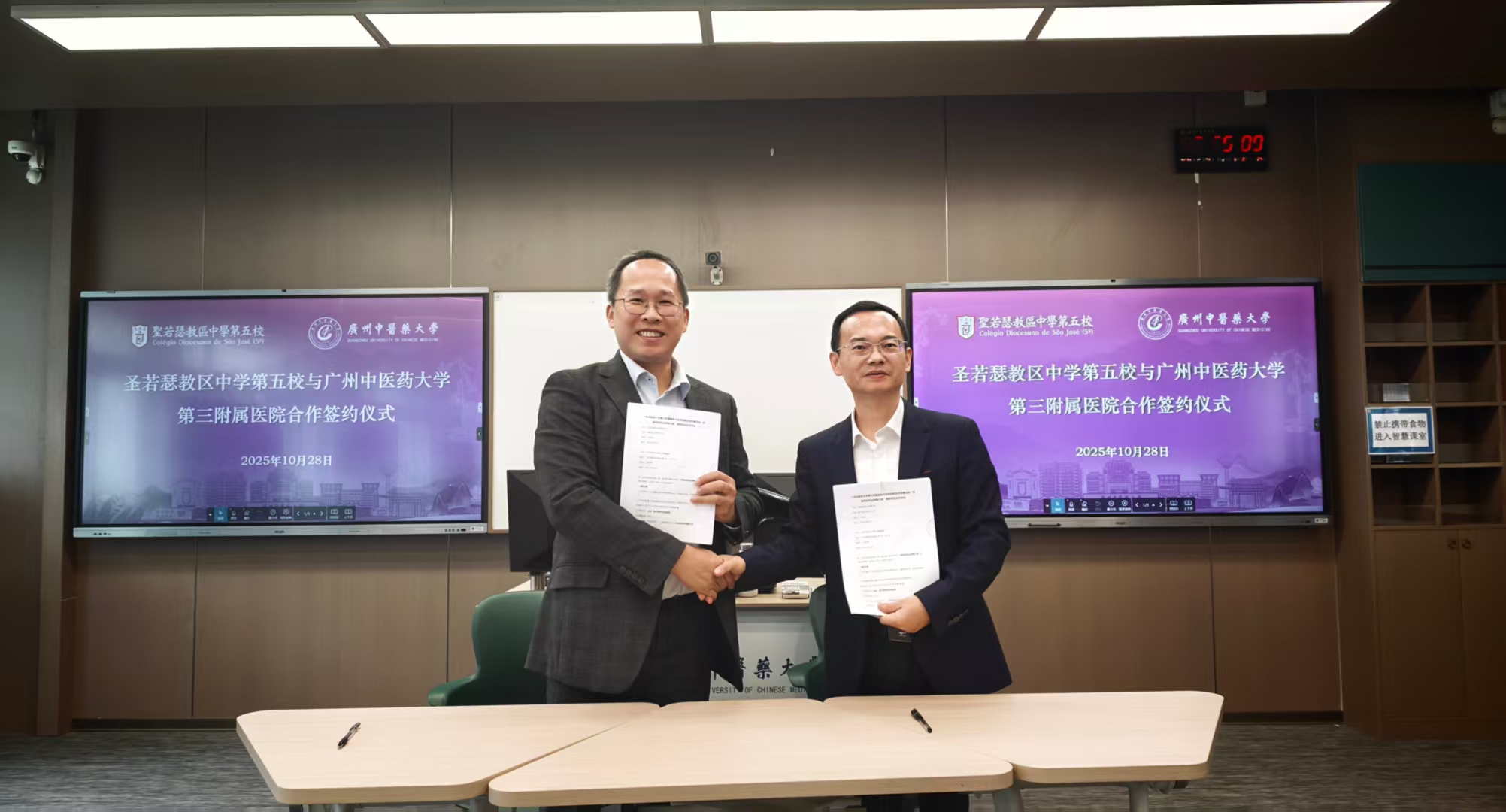聖若瑟教區中學第五校與廣州中醫藥大學第三附屬醫院簽署合作協議 2025-10-28 聖若瑟教區中學第五校與廣州中醫藥大學第三附屬醫院簽署合作協議|中醫藥文化教育進入校園2025年10月28日,本校黃建民校長及林鎮翔副校長,率領校內的「中草藥研究... 更多 >>
