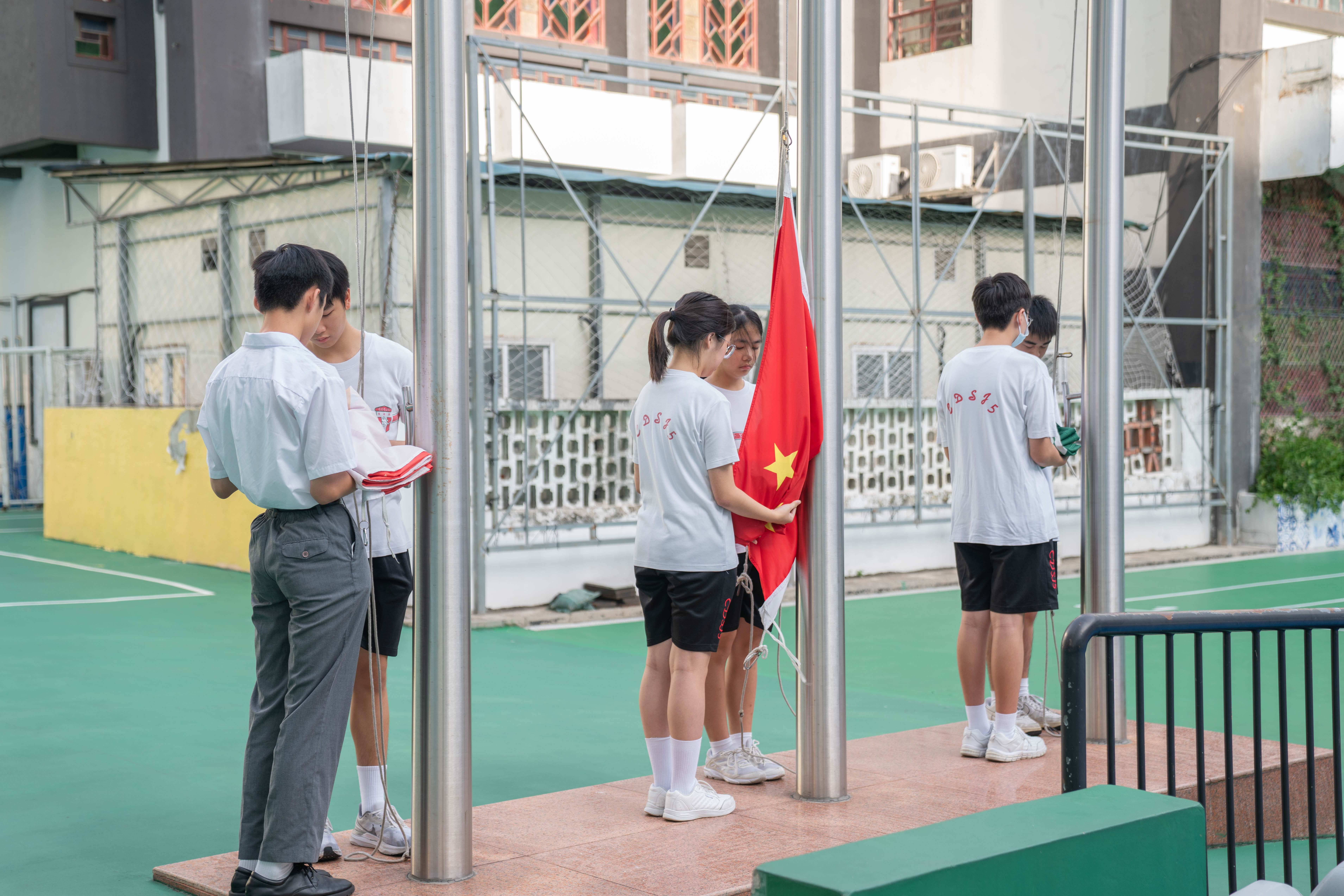 爲慶祝中華人民共和國成立76周年,本校於9月30日(中學部)上午舉行了隆重的升旗儀式。升旗前,學生代表分別用普通話、英語及廣東話發表主題演講。他們在致辭中提到在國力強盛的中國領導下,同學們要珍惜現在的美好生活,並鼓勵大家勇於創新,敢於擔當,以弘揚愛國愛澳精神。