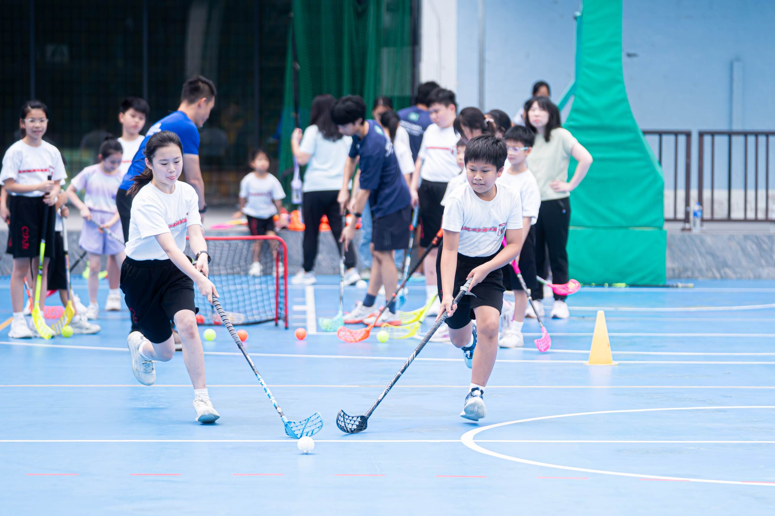 在專業教練黎寧會長和林偉誠總教練親自指導下,我們學習軟式曲棍球的基本知識和技巧,如握桿姿勢、控球、傳球和規則。