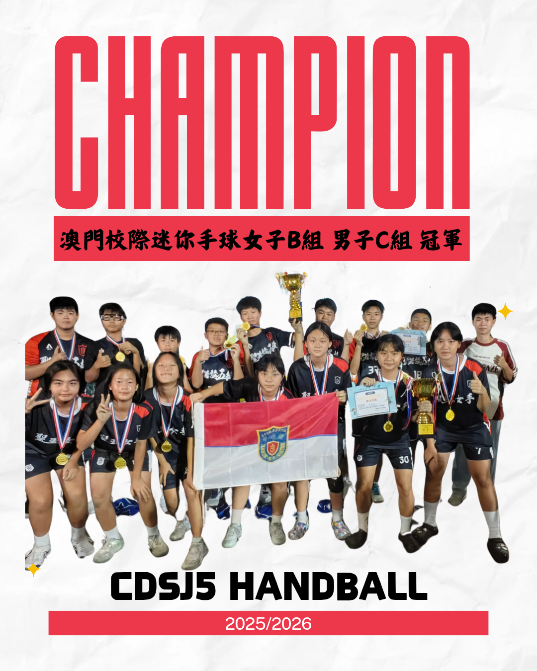 聖五手球隊雙冠王!女B男C齊奪冠!