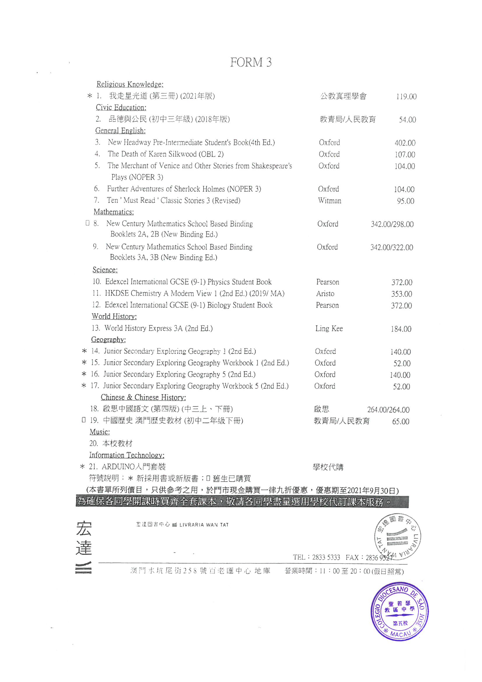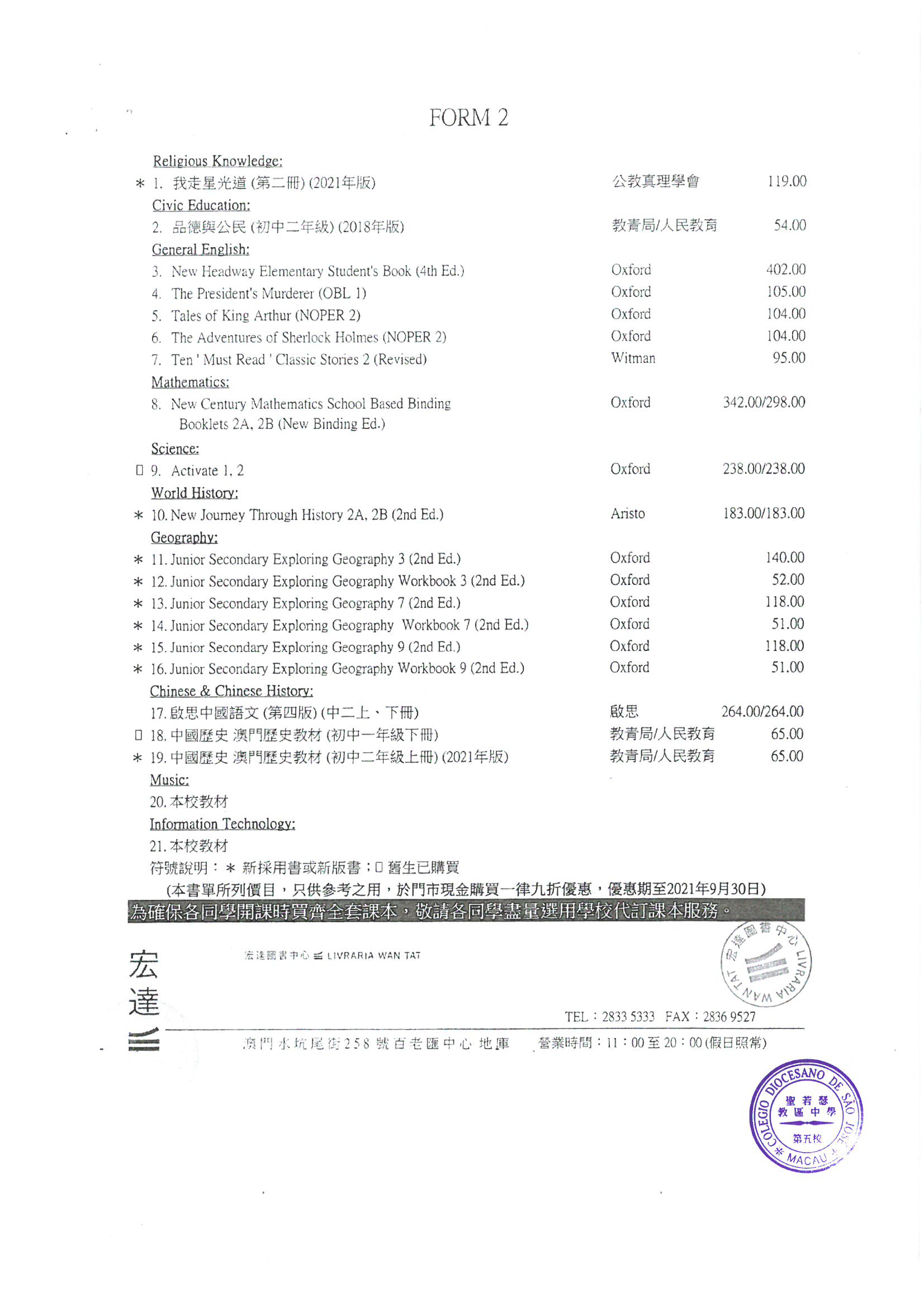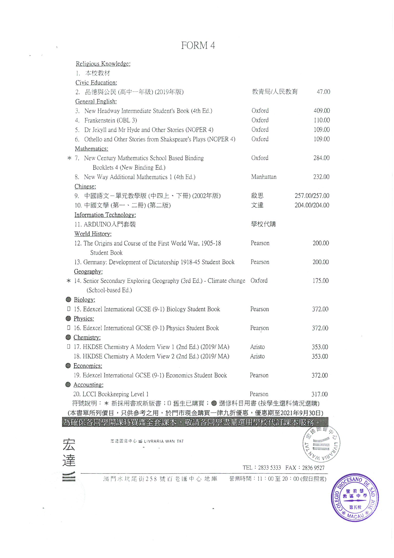 2021-2022中學英文部書單