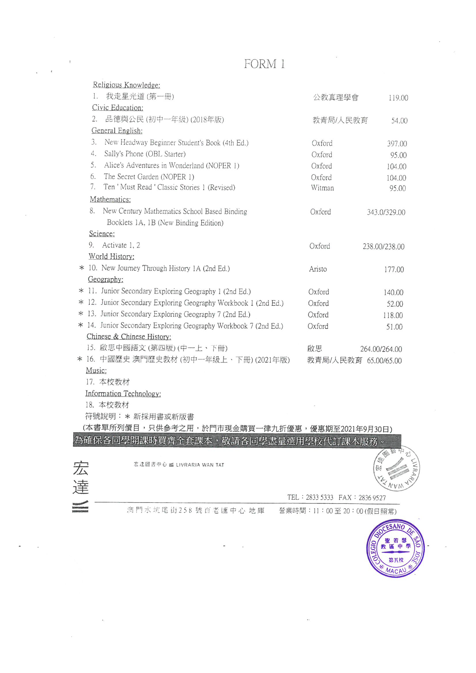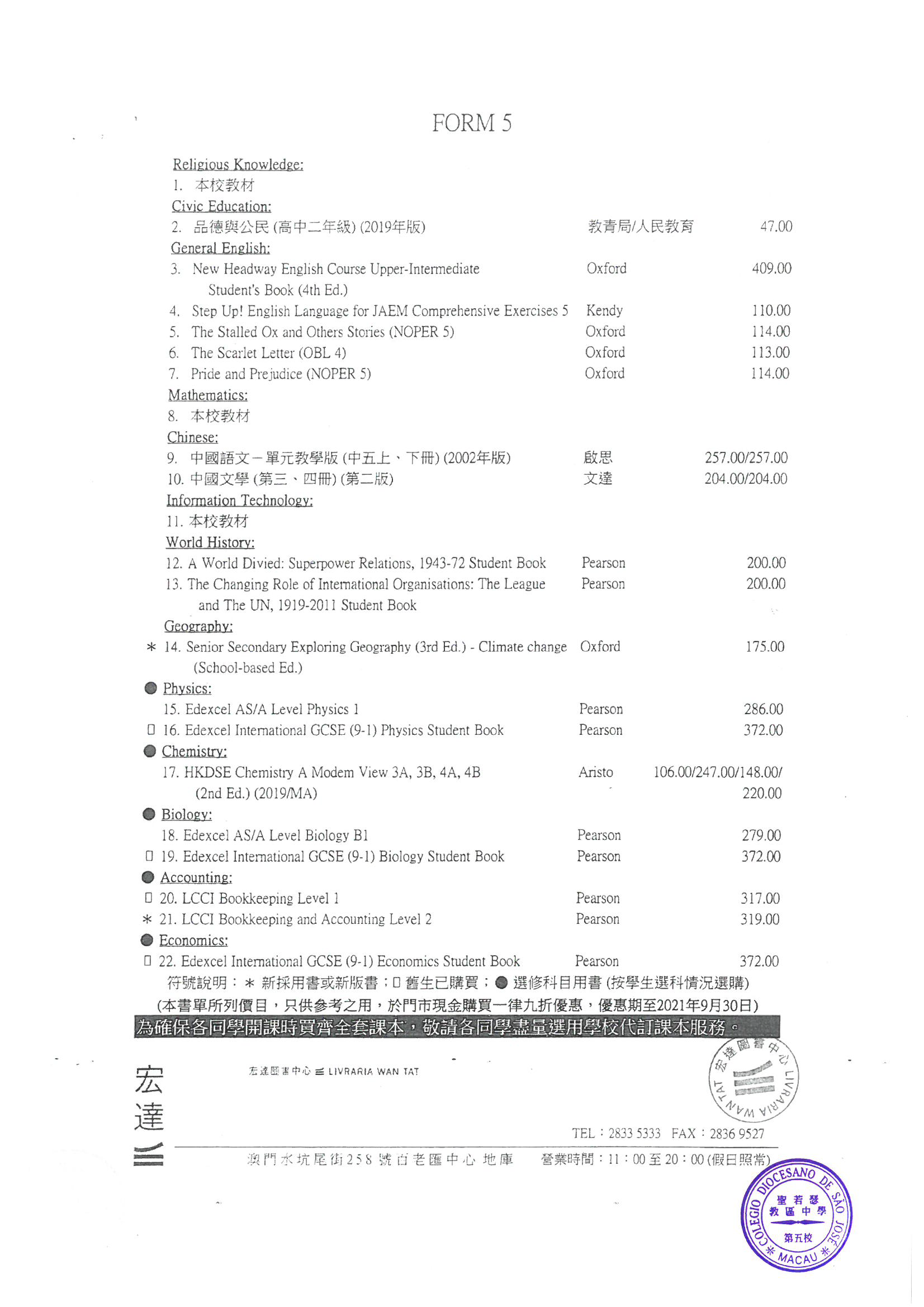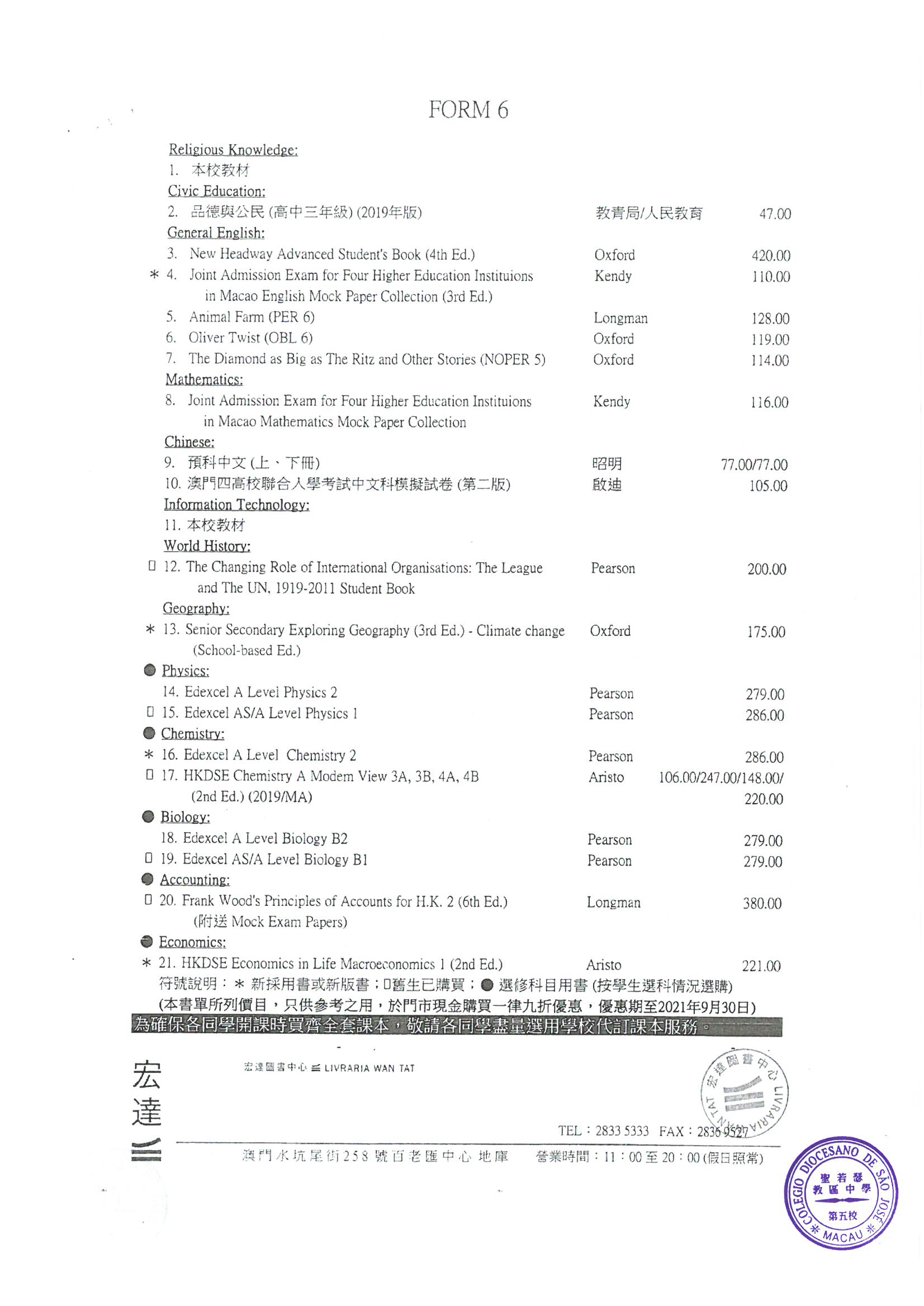 2021-2022中學英文部書單