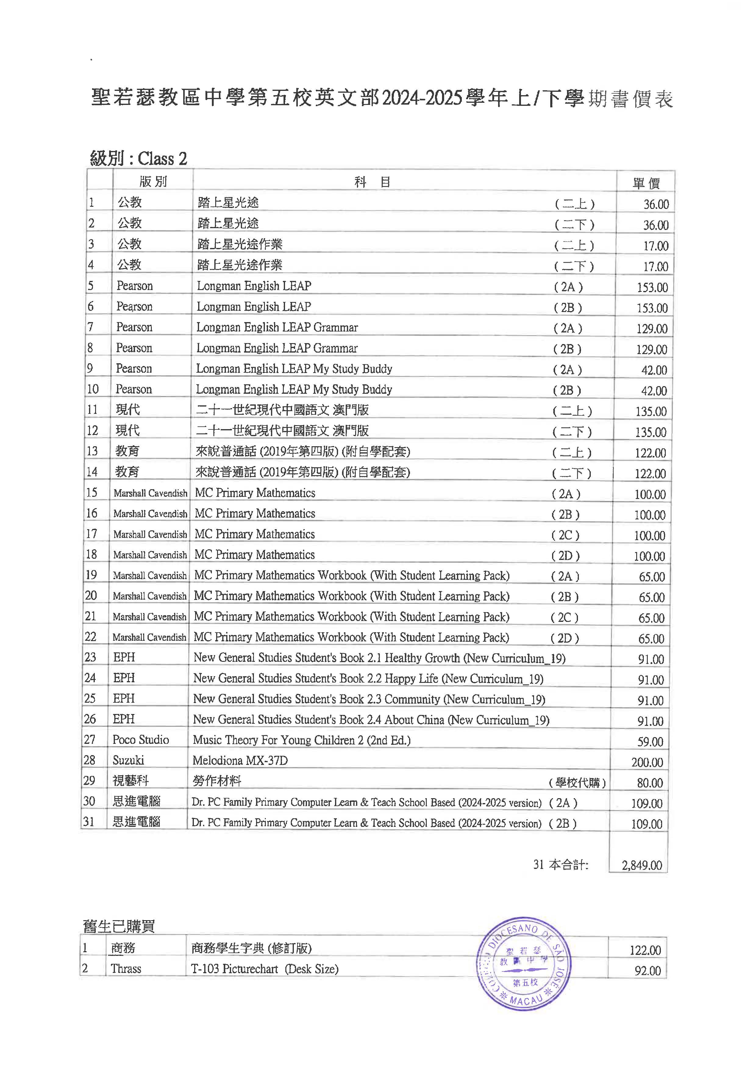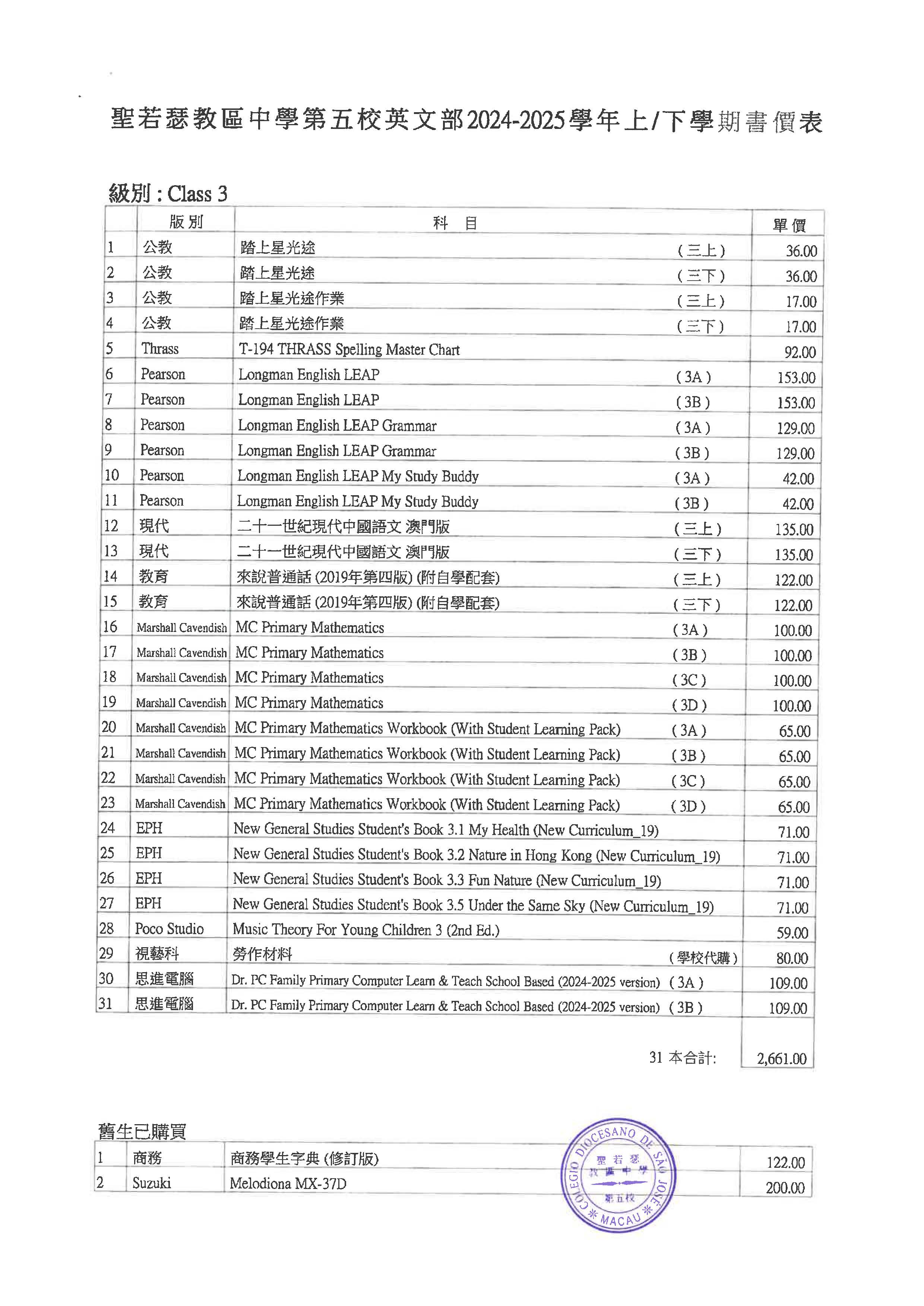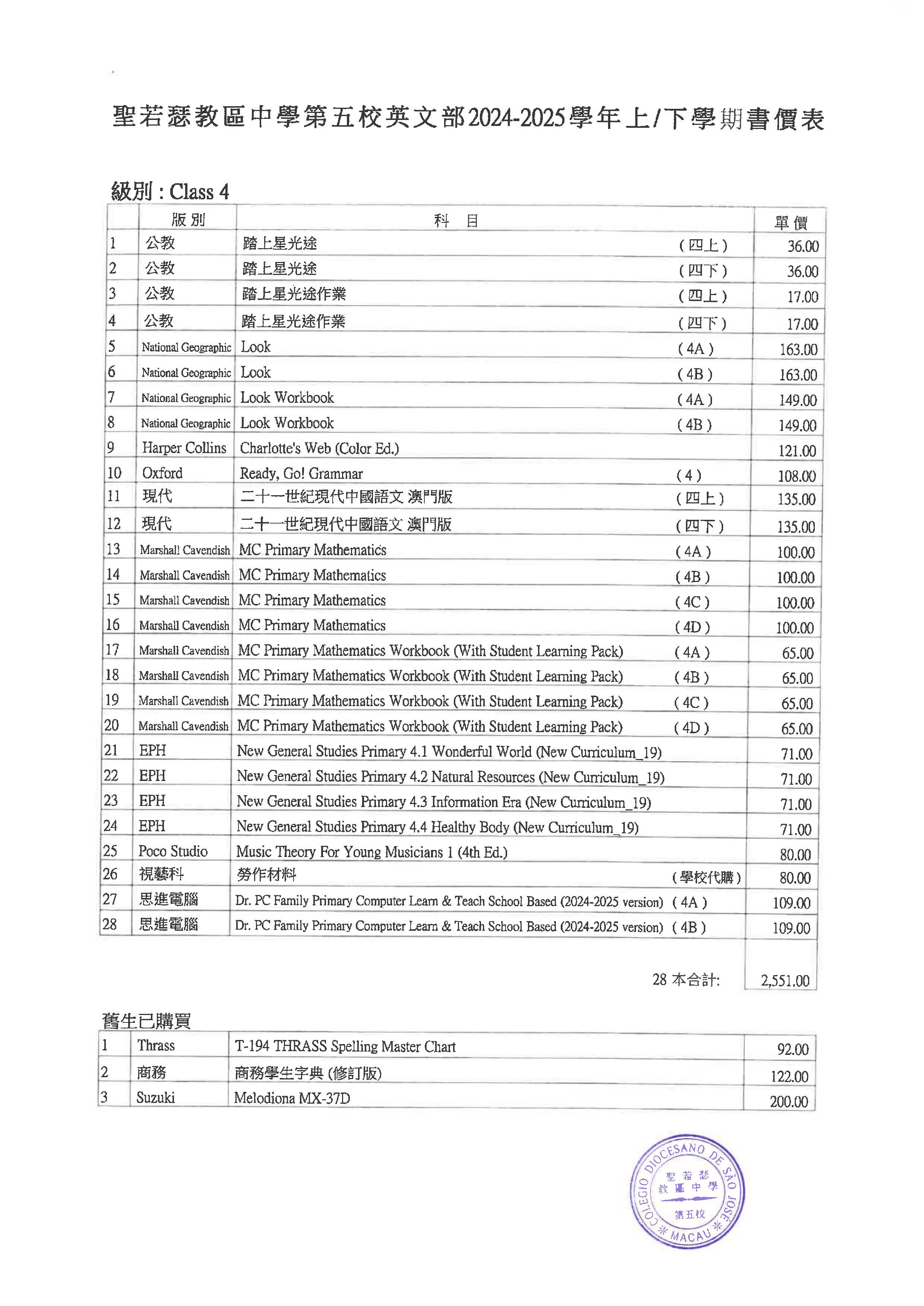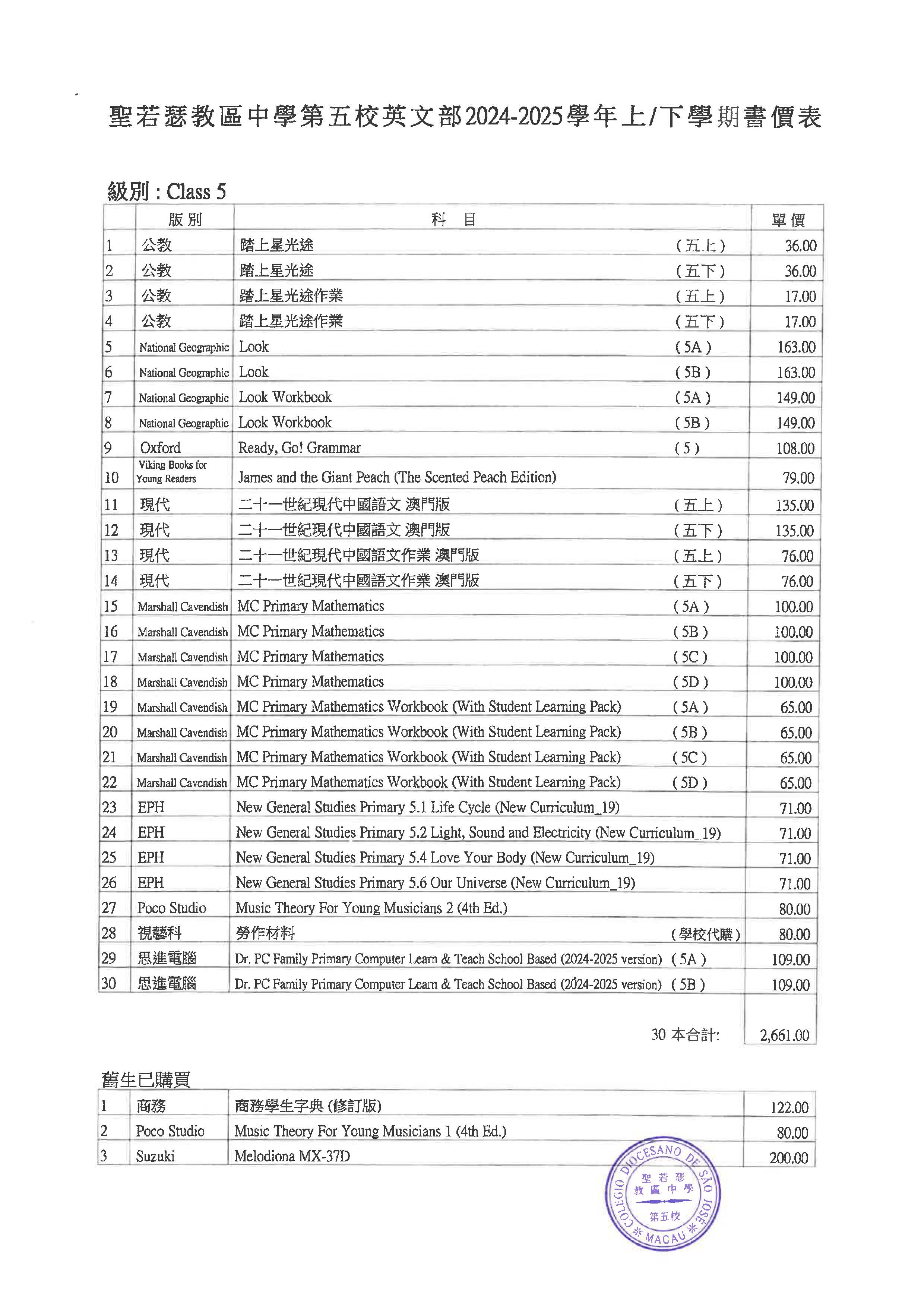 2024/2025學年小學英文部書單