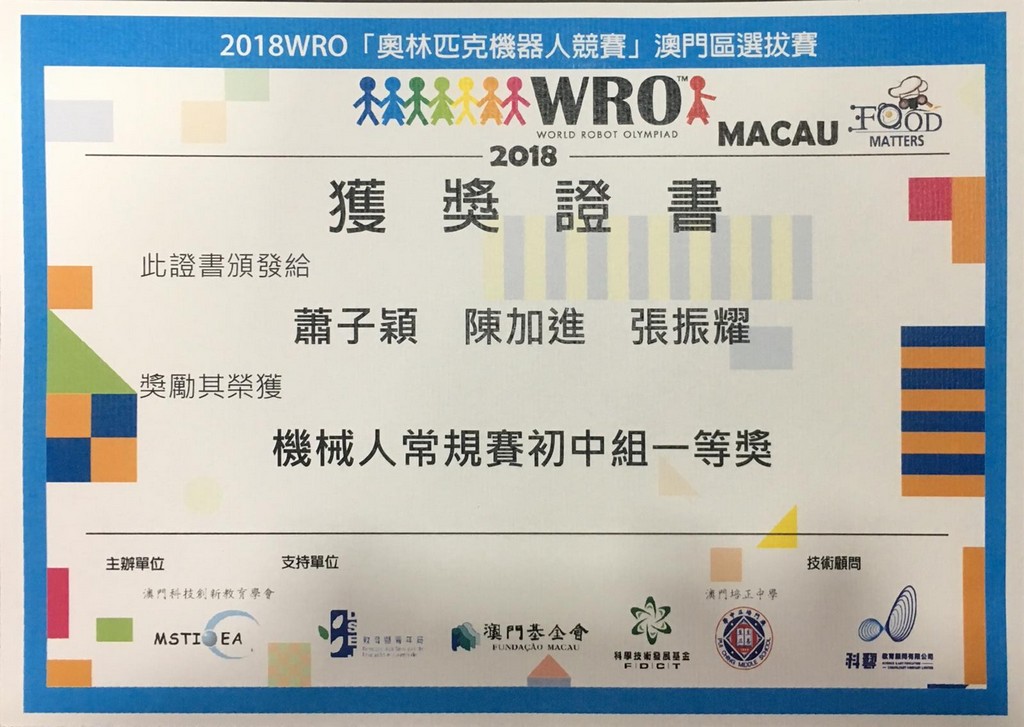 奧林匹克機械人澳門區選拔賽獲奬 / Award of World Robot Olympiad (Macau)
