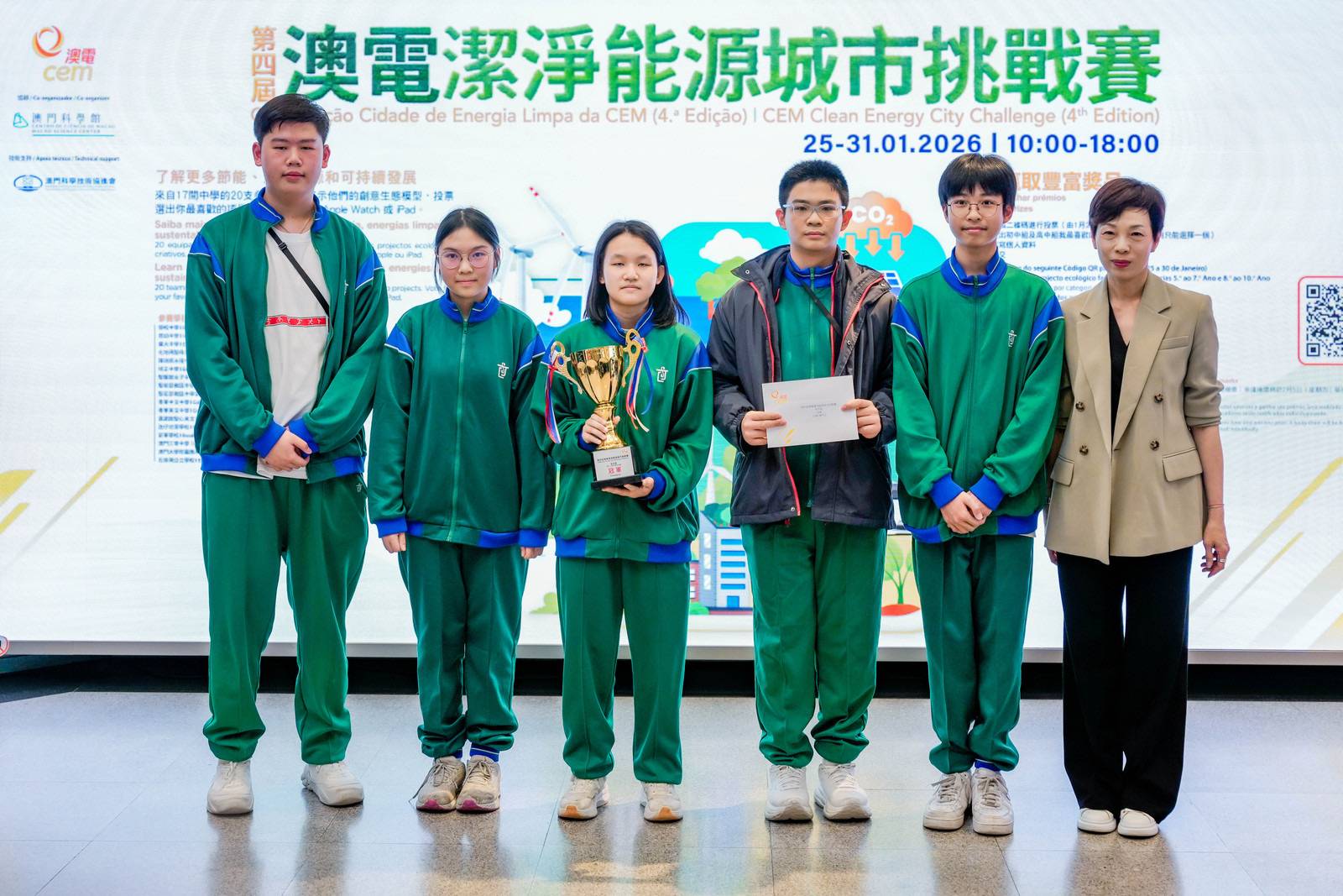 本校日前參加了由澳門電力股份有限公司(CEM)主辦的「第四屆澳電潔淨能源城市挑戰賽」。在激烈的競爭中,本校學生憑藉卓越的科學素養與創新構思,最終勇奪初中組
