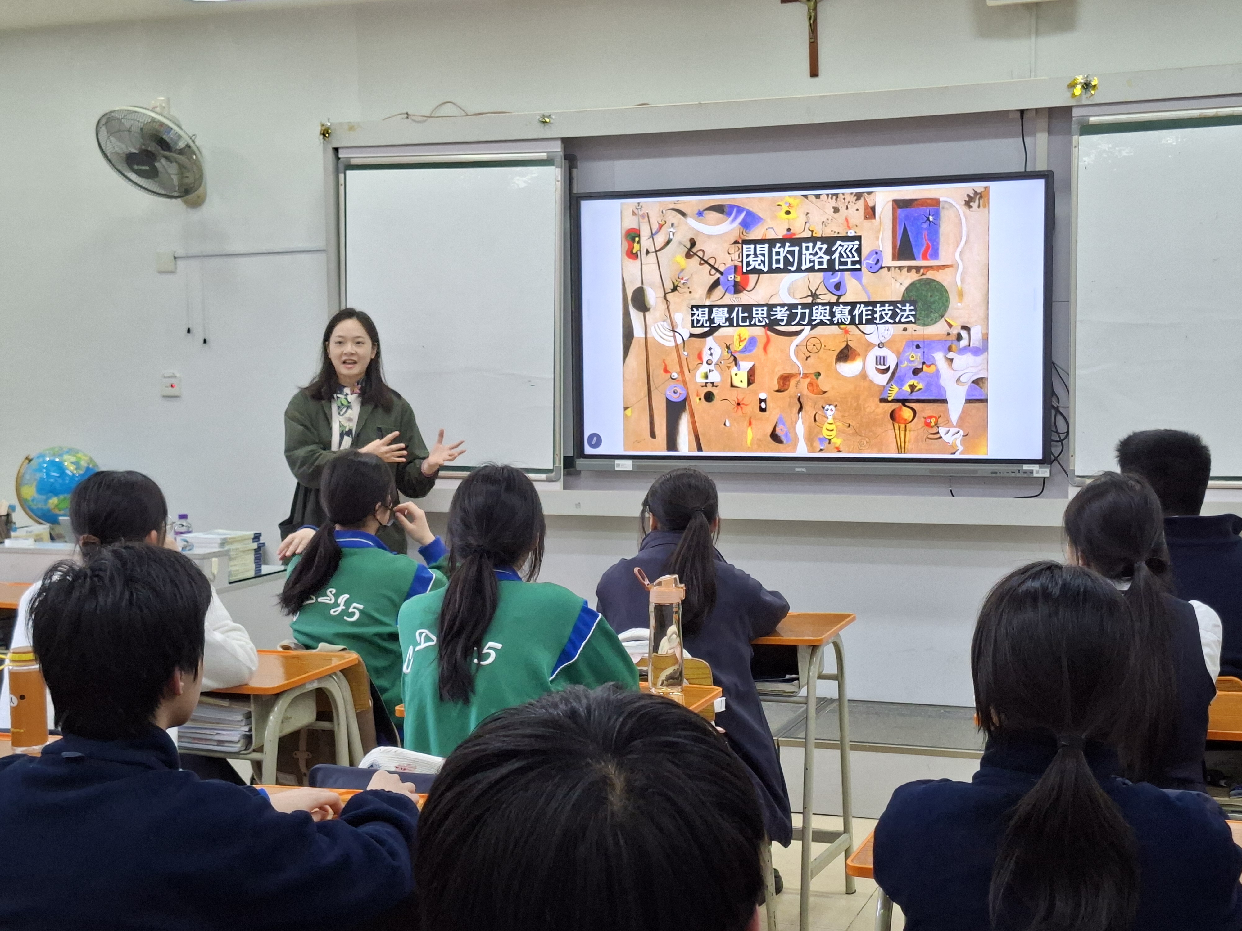 近日,聖五詩社亦參加澳門基金會及《澳門日報》主辦的閱讀寫作講座,榮幸邀請著名詩人袁紹珊主持專題講座「閱的路徑:視覺化思考力與寫作技法」。袁紹珊為清華大學文學博士,創作成果豐碩,曾獲台灣時報文學獎新詩首獎、紫金·人民文學之星詩歌大獎等殊榮,並曾應邀參與紐約、葡萄牙、馬來西亞等多個國際詩歌節。是次講座,袁紹珊博士以其跨文化學習背景與得獎經驗,聚焦視覺化思考如何轉化為創作動能,引導詩社同學探索文字與視覺意象的融合,提升詩文中的獨特性與表述能力。講座尾聲,同學們遞上手寫的創作詩稿,致予袁紹珊博士點評留念。這場真摯的筆墨交流,不僅是技法的傳承,更是文學溫度與創作熱情的直接傳遞。