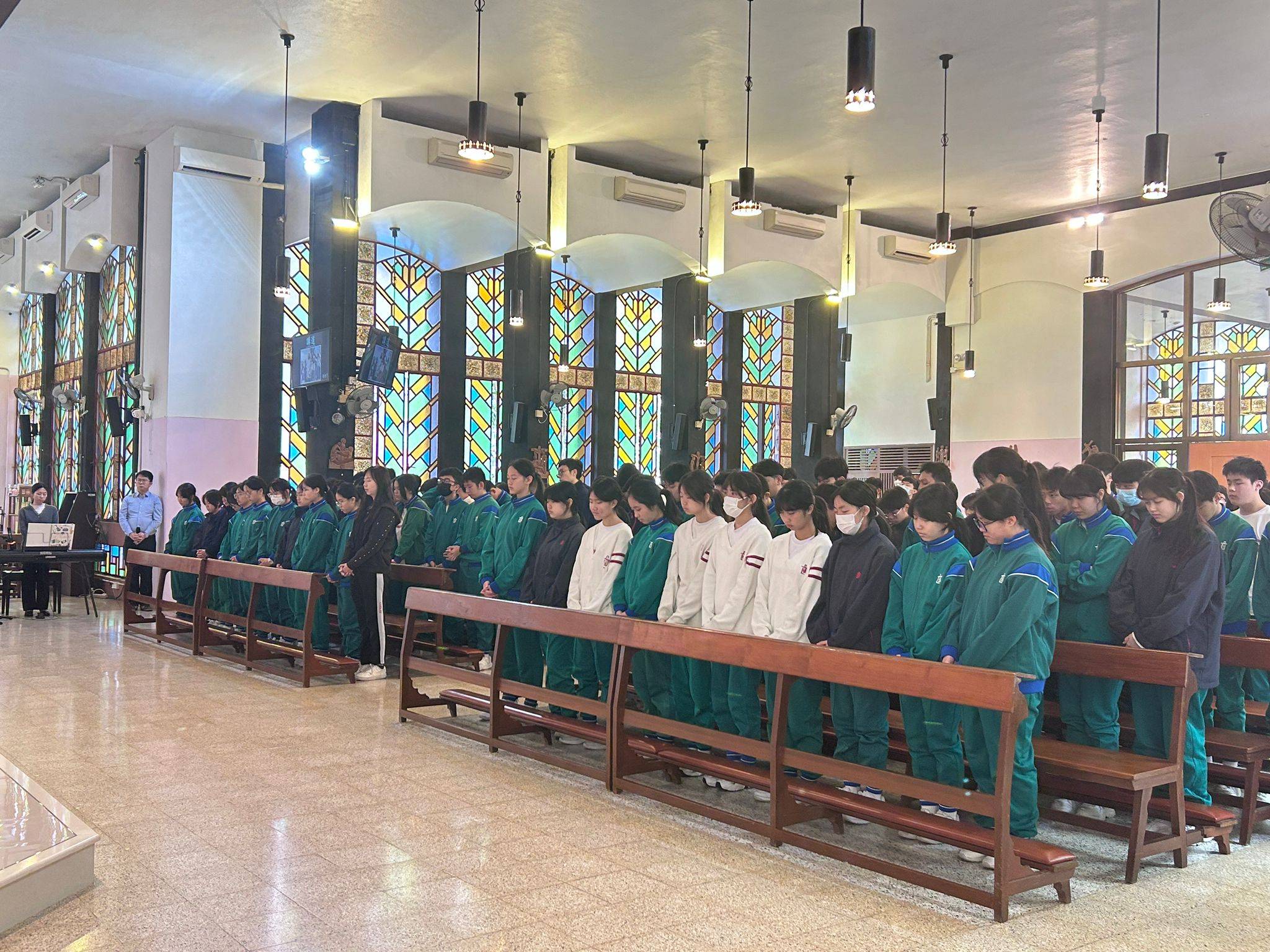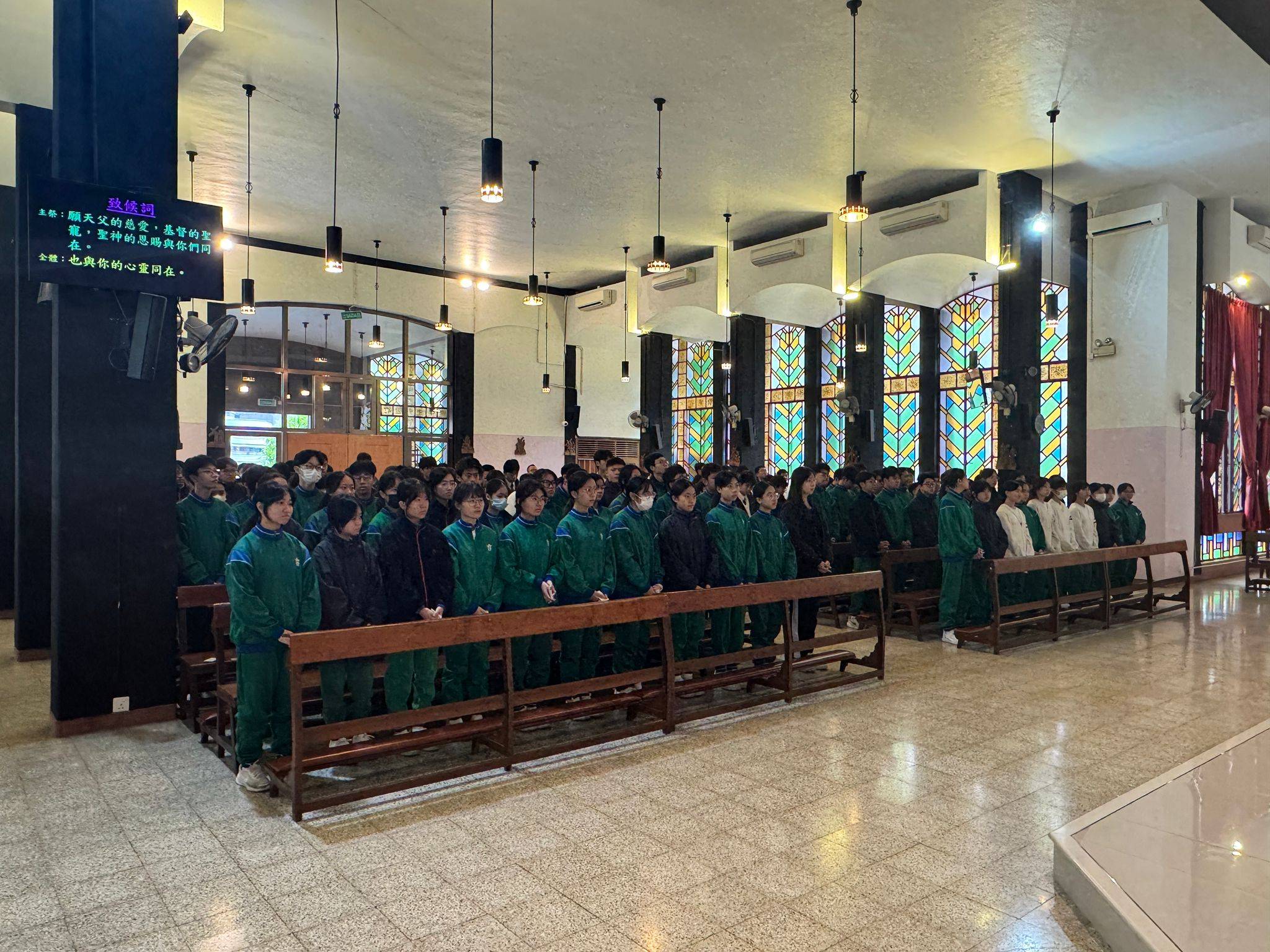 3月6日為首瞻禮六,特別敬禮耶穌聖心的日子,初三級全體學生前往花地瑪聖母堂,參與由校牧張俊鍵神父主禮的彌撒聖祭。在彌撒中,神父特別為初三同學祈禱,祈求天主賜予他們心靈的力量與平安,陪伴他們面對日漸繁重的課業壓力,並引領他們在成長路上找到人生的意義。