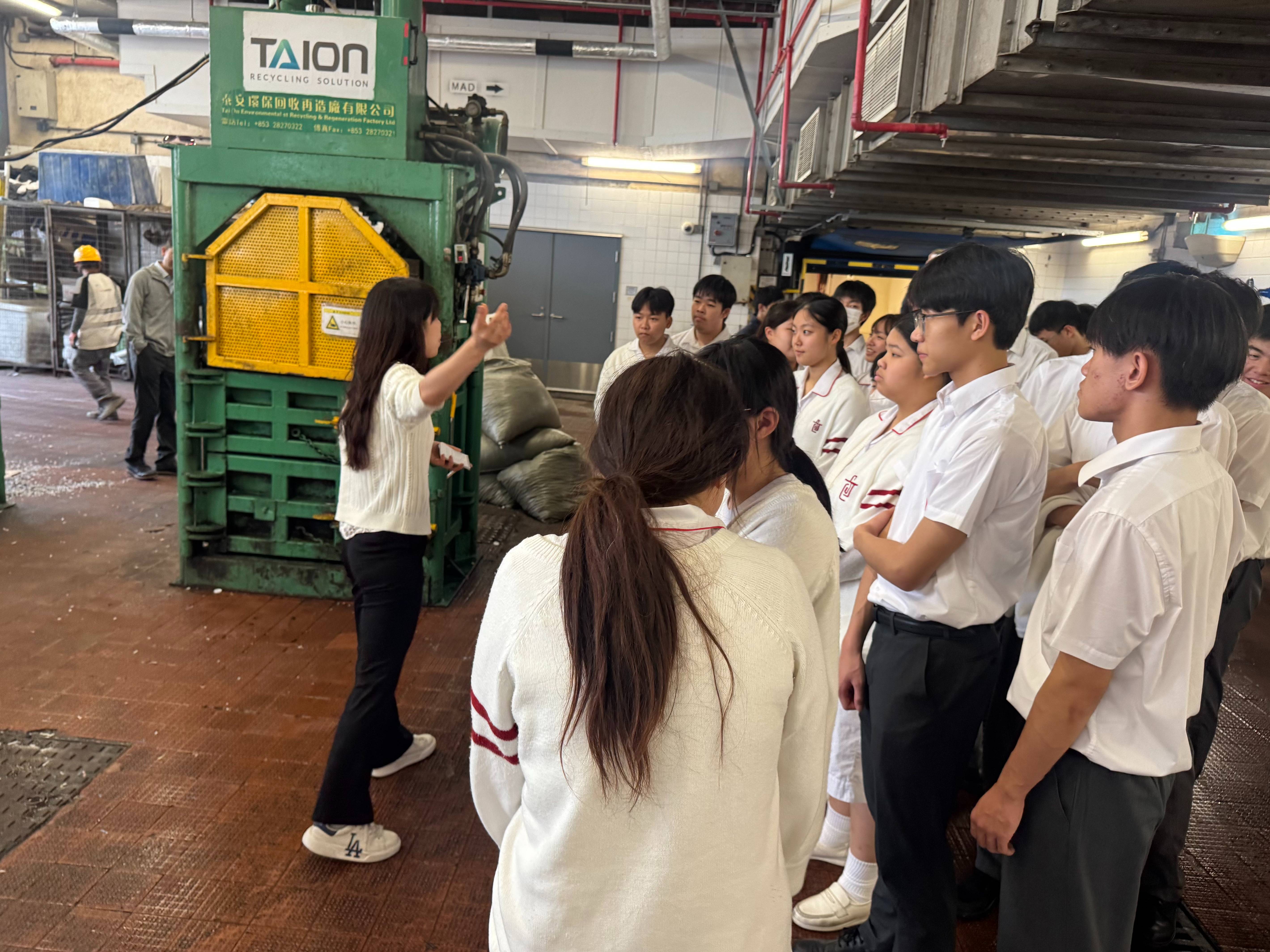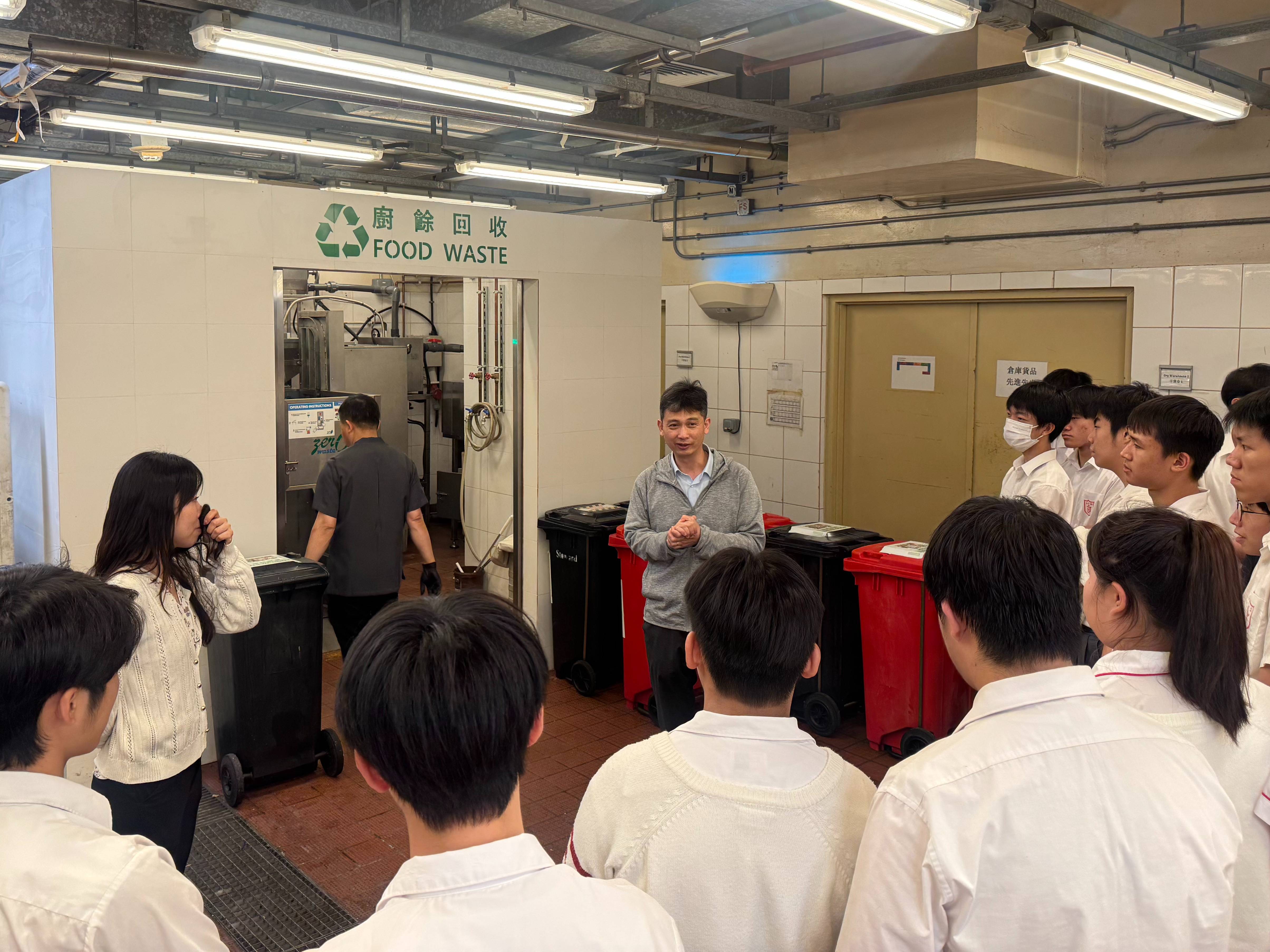 在參觀過程中,學生們首先接觸到酒店嚴謹的廚餘管理系統。除了基礎的廚餘分類外,酒店更設立了每月平均個人廚餘目標,並配合相應的獎勵機制,鼓勵員工在日常生活中落實減廢。此外,學生亦深入了解了廚餘處理的科技應用。現場展示的高效廚餘機,利用硝化細菌等微生物分解,將廢棄物轉化,實踐循環經濟。